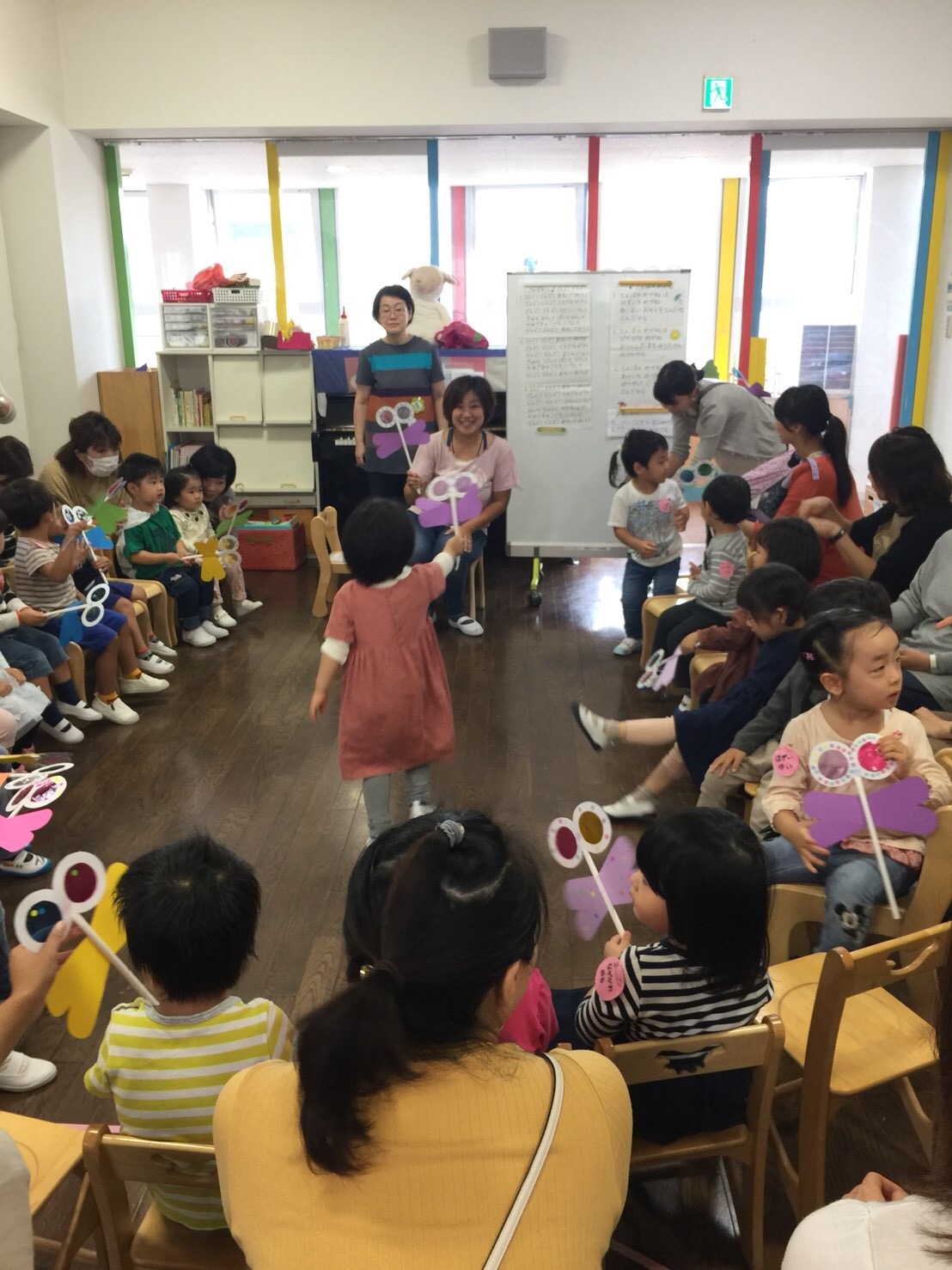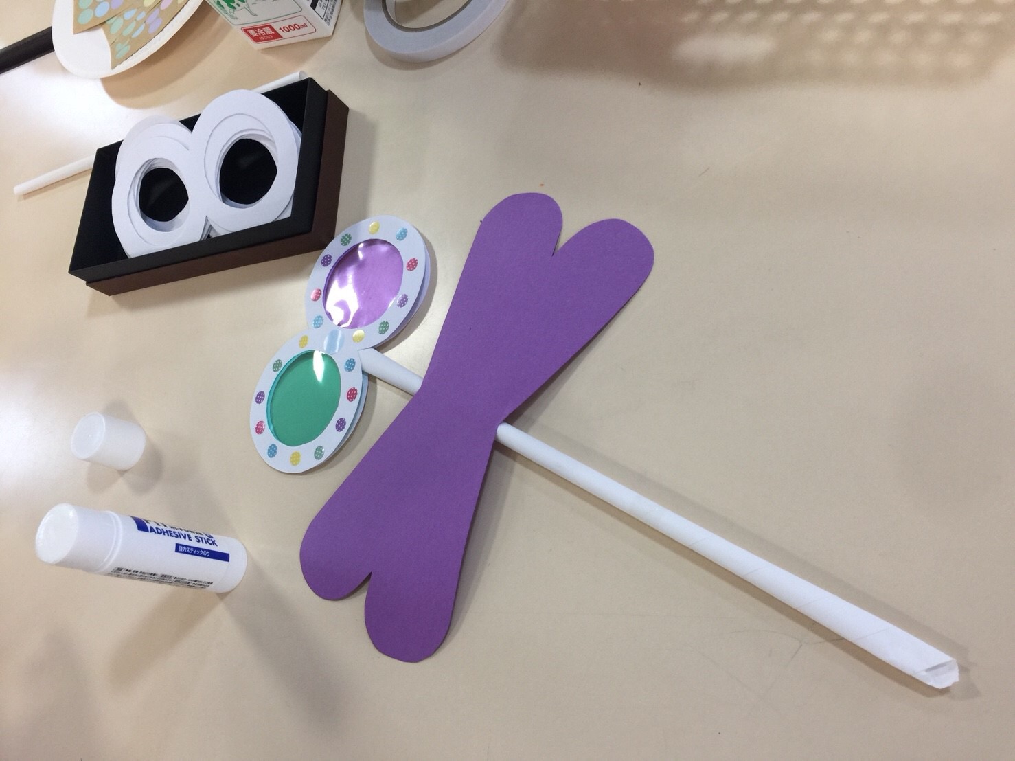 今日は、9月から歌ってきた♪とんぼのめがねをイメージし、「とんぼのめがね」を作りました。お集まりで、もも組さんの作ったとんぼが元気良く飛んで、みんなも笑顔いっぱいで素敵でした♪