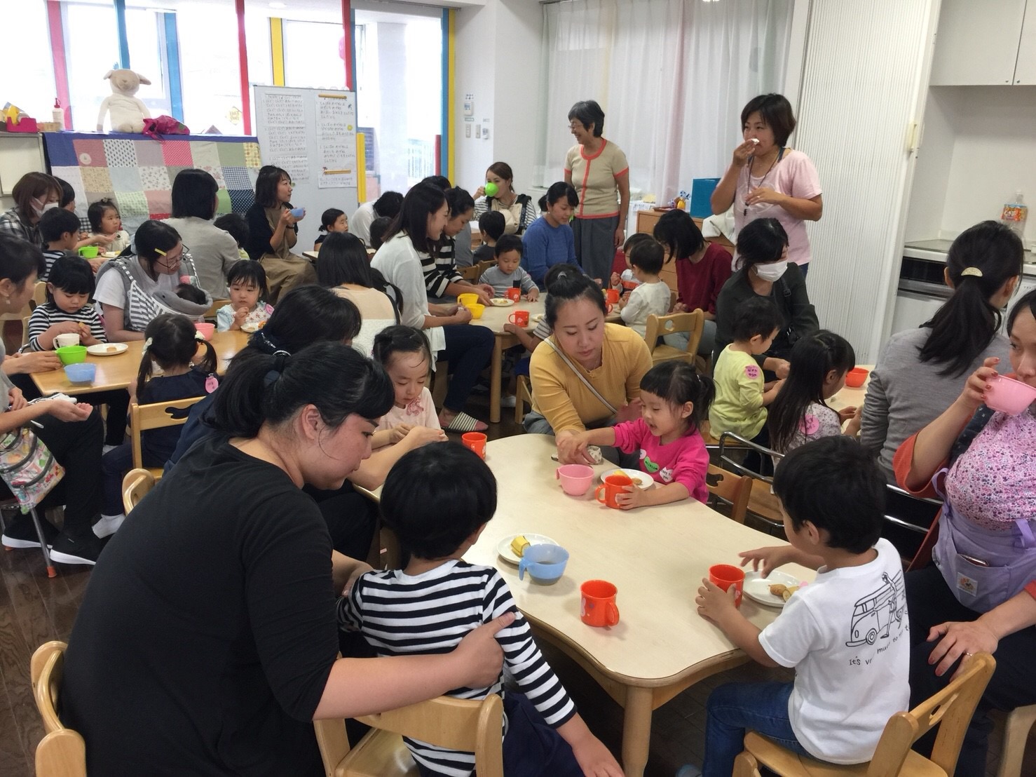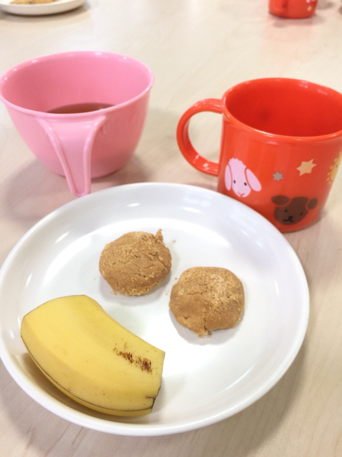 おやつは、手作りきなこクッキーとバナナでした。来週は、運動会です。もも組さんの心がひとつになって「どうぶつ体操」ができたらいいですね!10時30分までにいらして、受付をして、スタッフから緑のリボンをお受け取りくださいますよう、よろしくお願いします。平和公園で待っています!