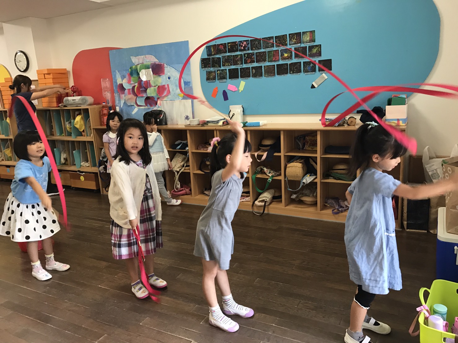 子ども達は今日までたくさん練習をしてきました。さくら組の女の子達はお部屋でダンスの自主練をしていました。自信を持って踊っている姿はとても素敵でした。