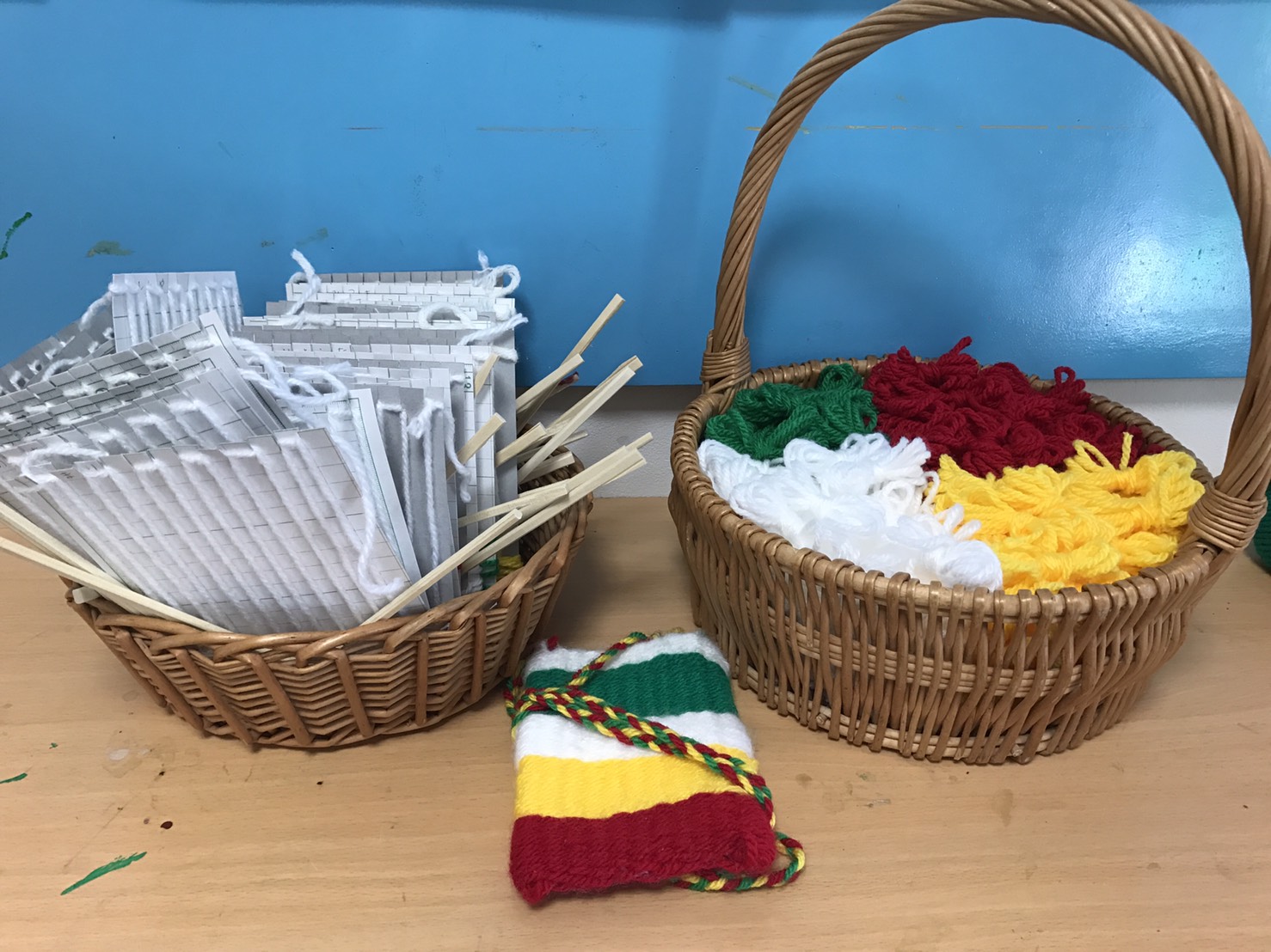 クリスマスカラーの意味を知り、少しずつ、献金袋を編み始めました。
