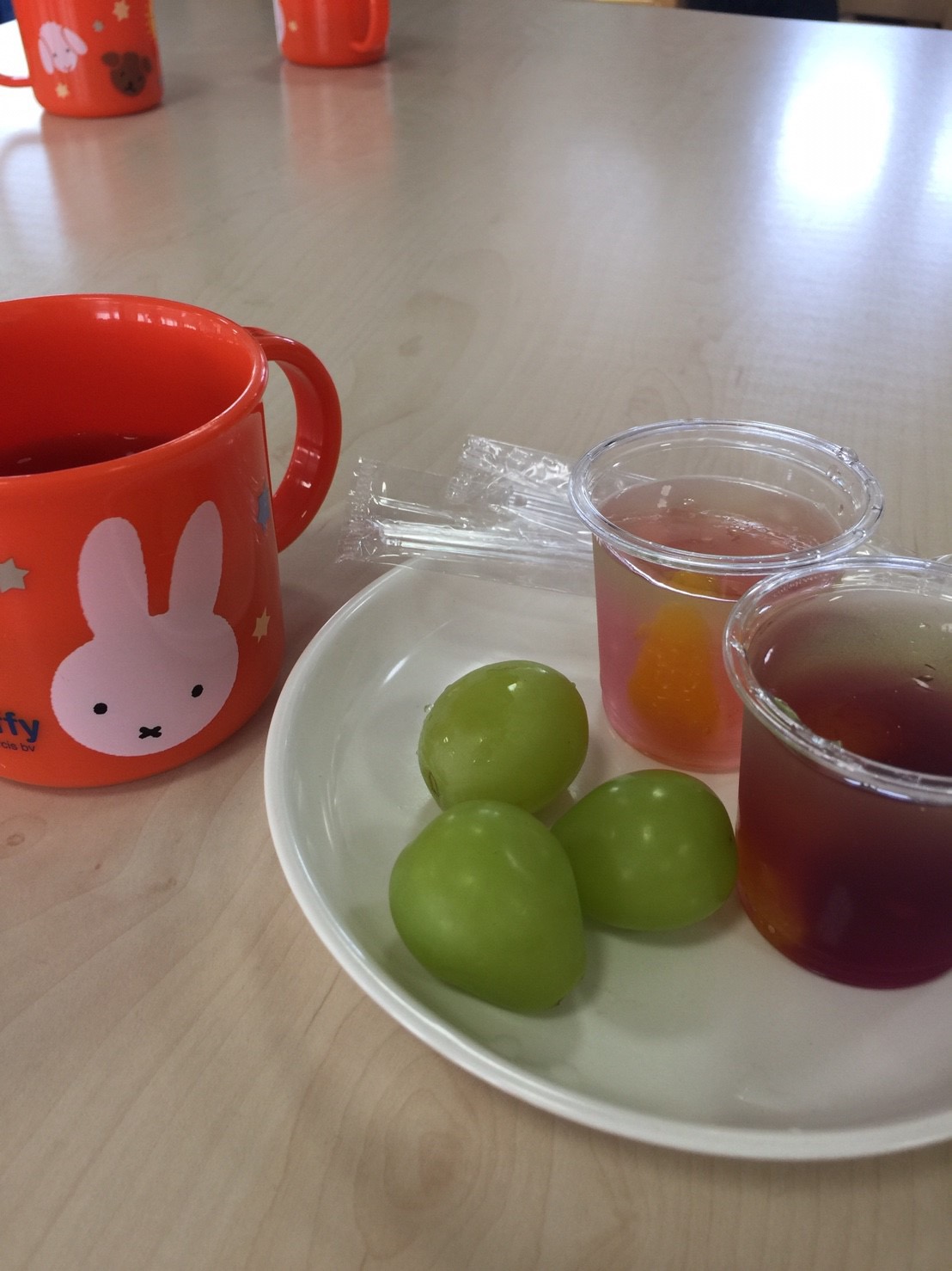 おやつはゼリーとシャインマスカットでした。