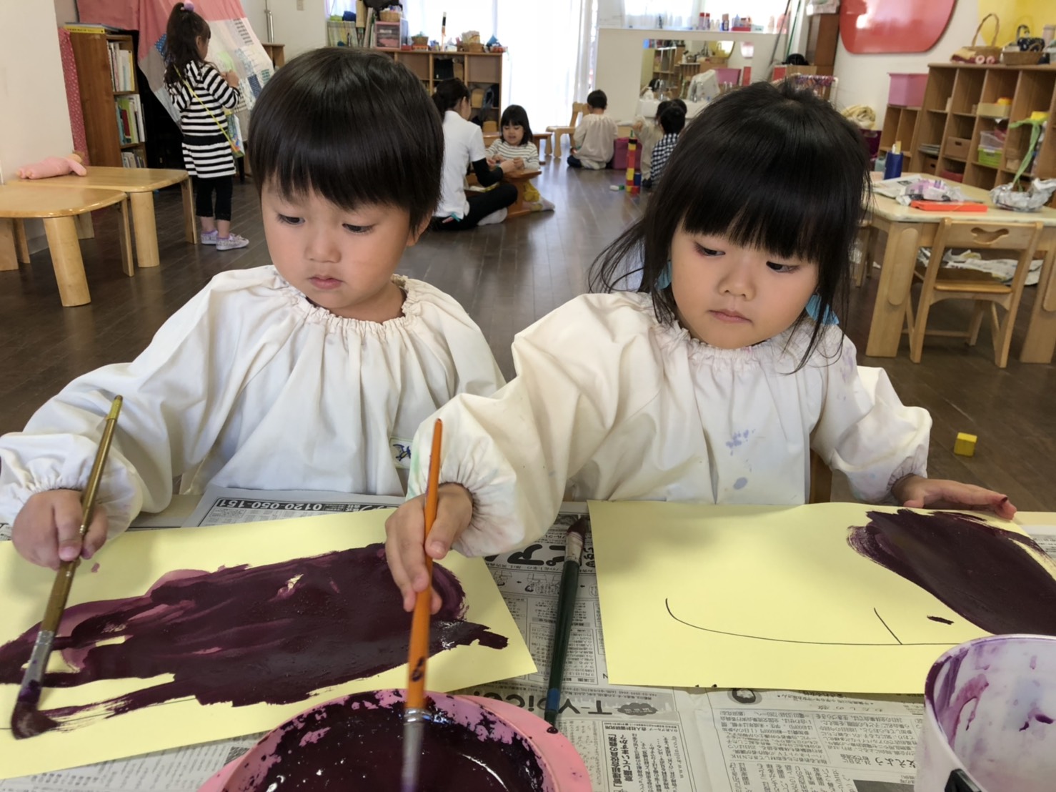 お話をしながら絵の具でおいもを描きました。