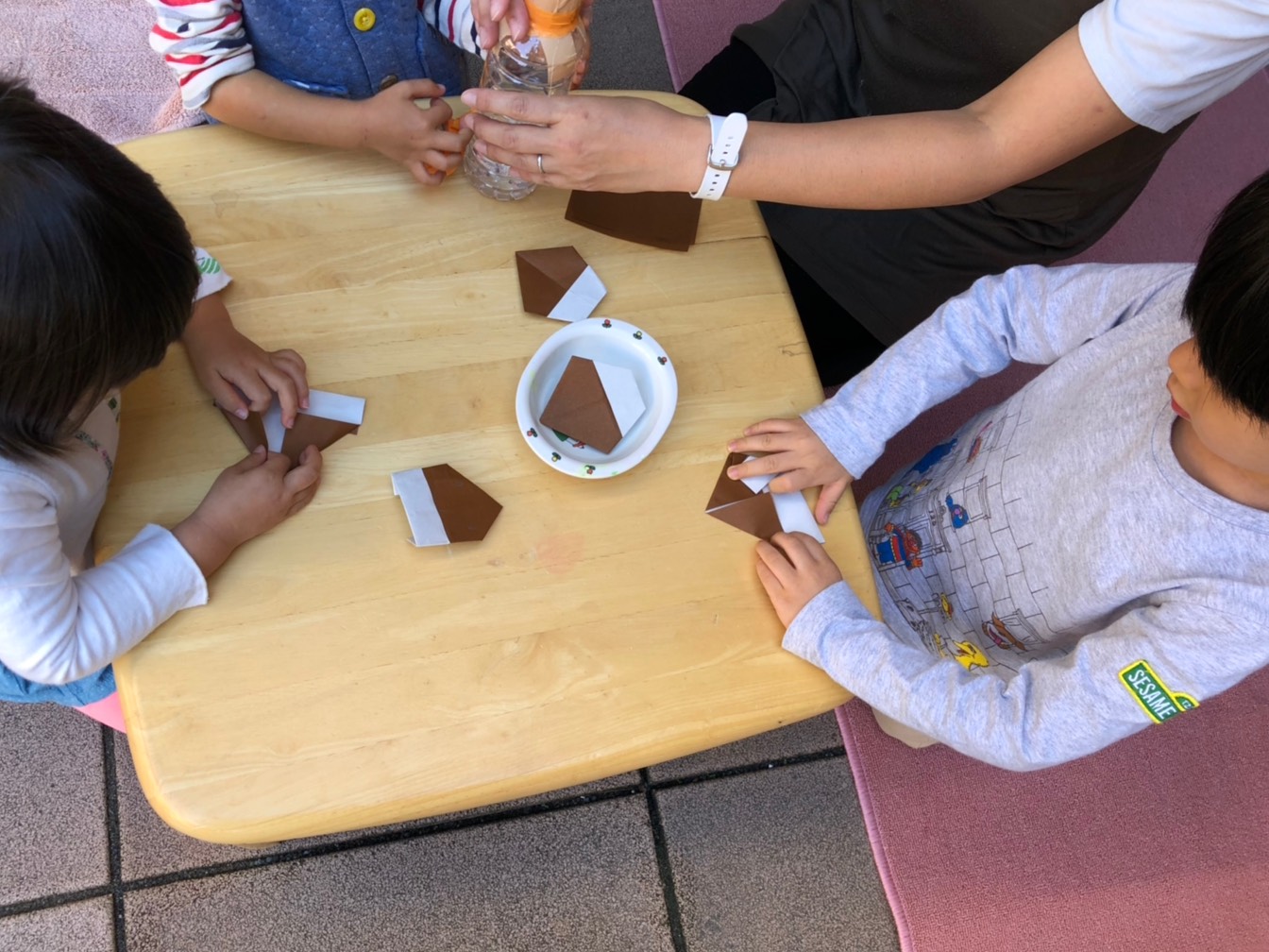 また、折り紙で栗を折りました。一人ひとり個性のある栗ができました。