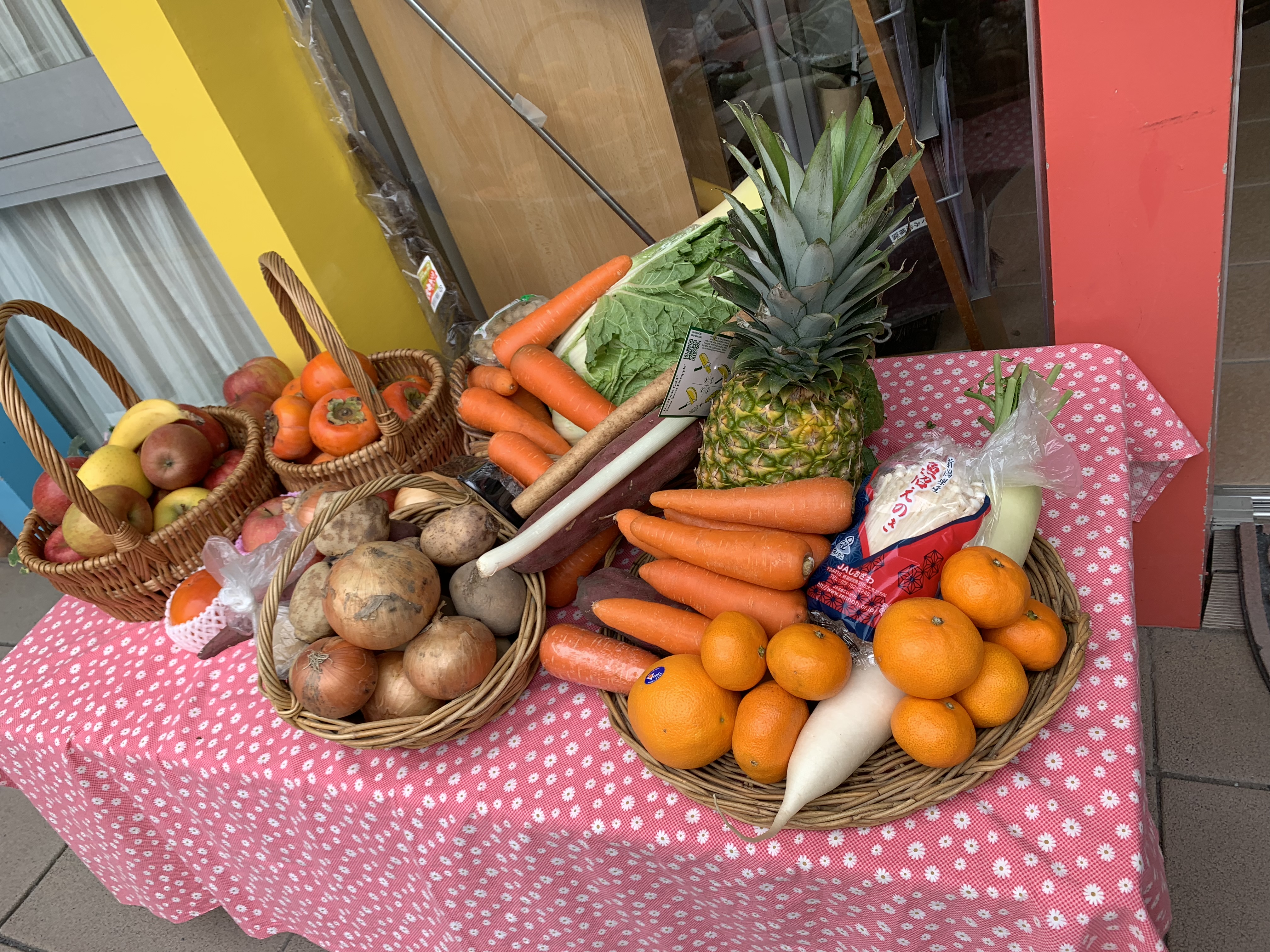 もうすぐ感謝祭 今日のひとこま 2018.11.19 今週、水曜日には『収穫感謝礼拝』 木曜日には『収穫感謝会食』を行うために、各家庭からお野菜と果物を持ち寄っています。 実りの秋。たくさんの食べ物をくださる神さまに感謝して、一つ一つ美味しくいただきましょうね。