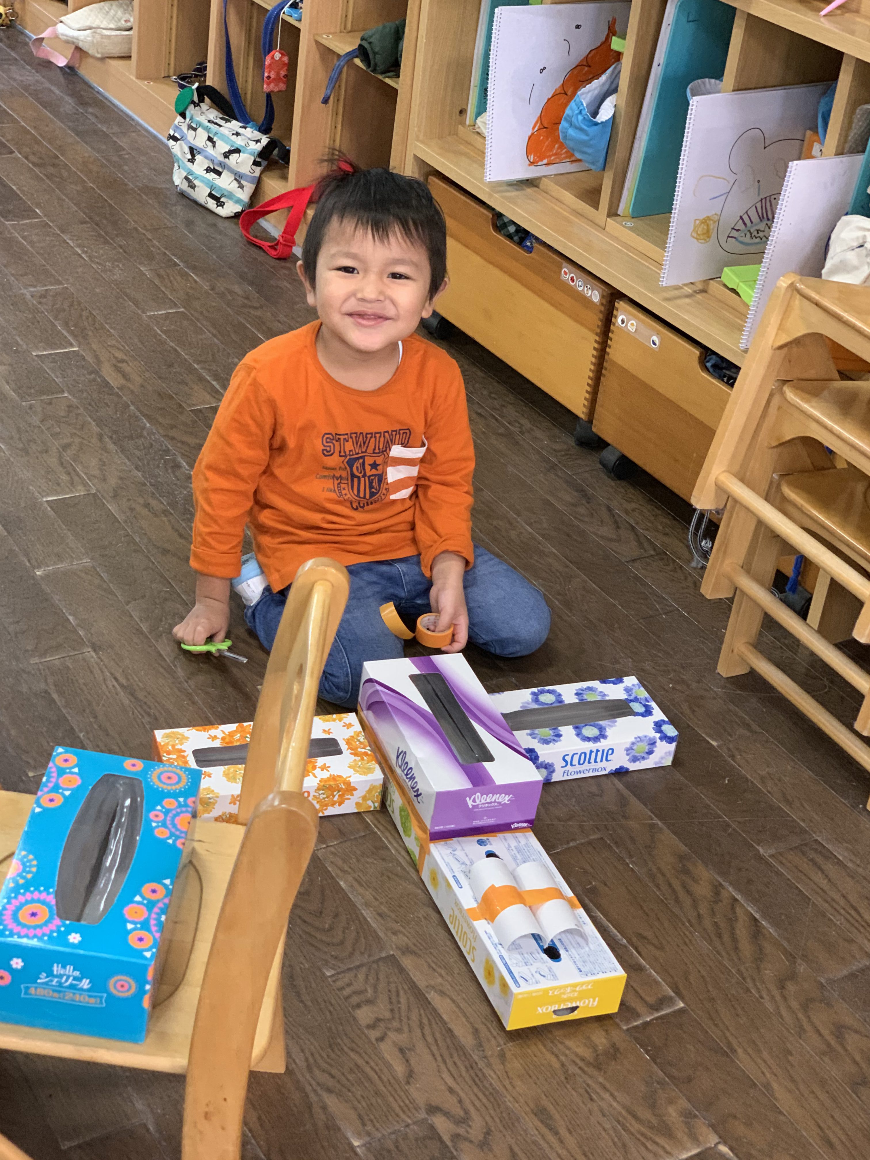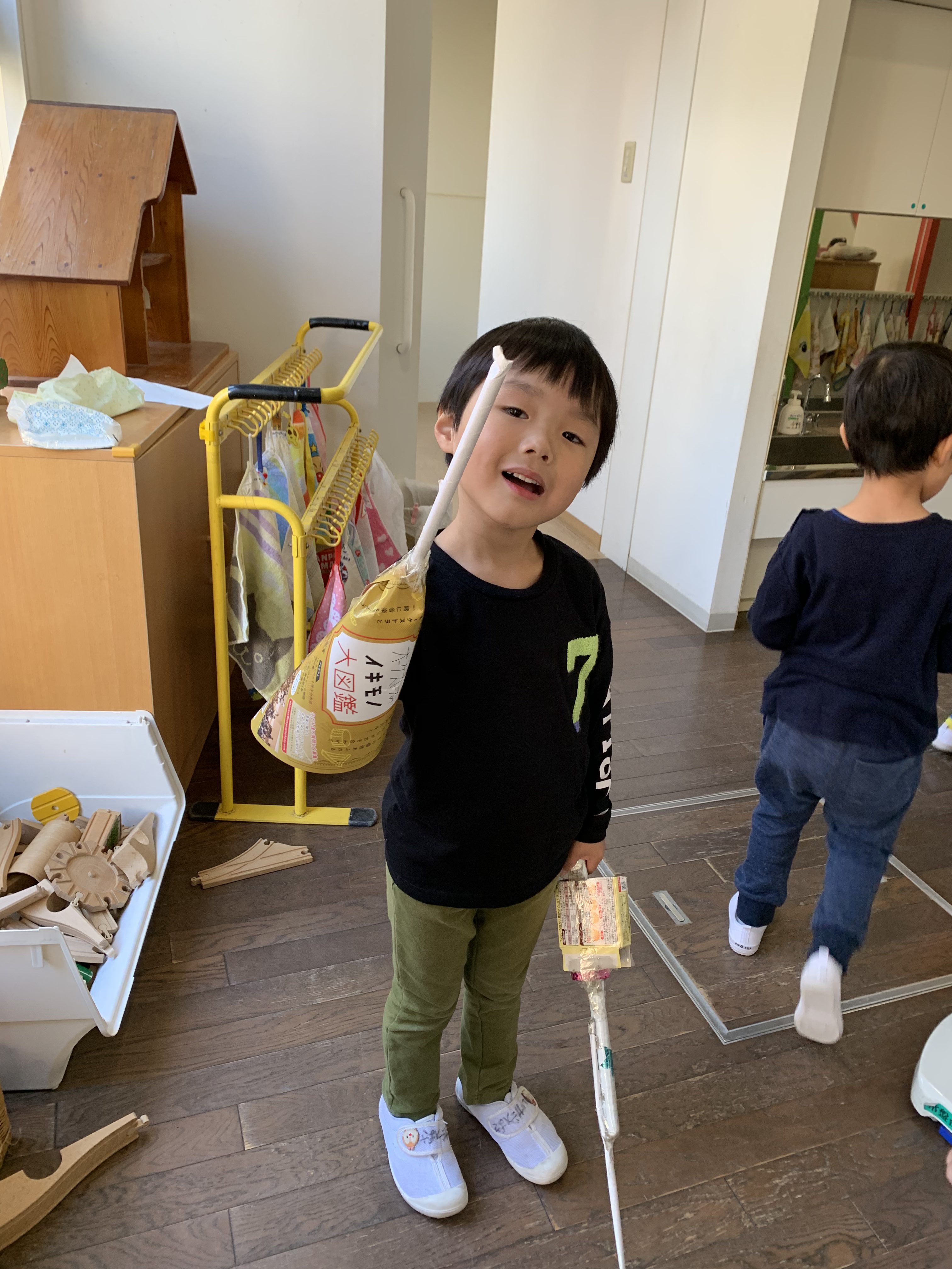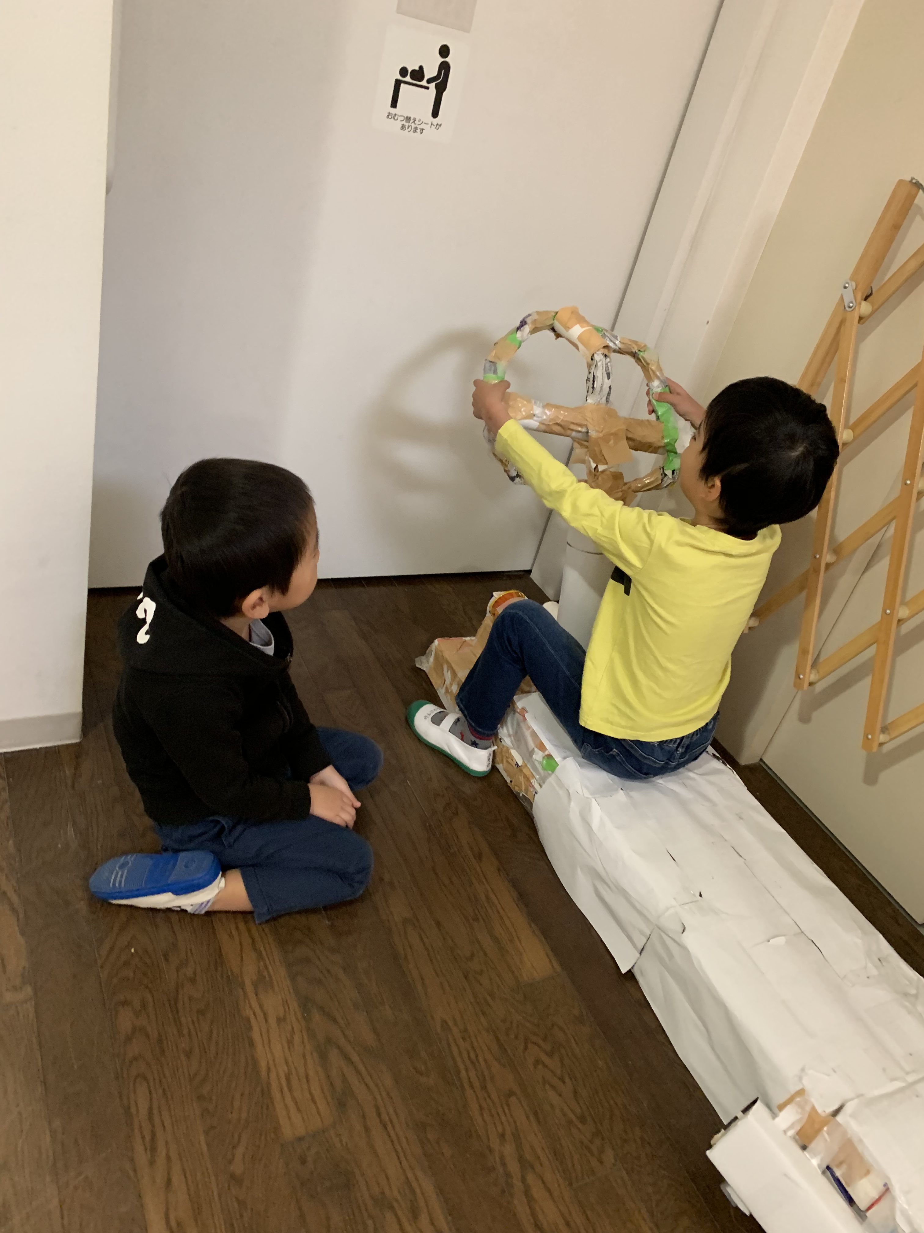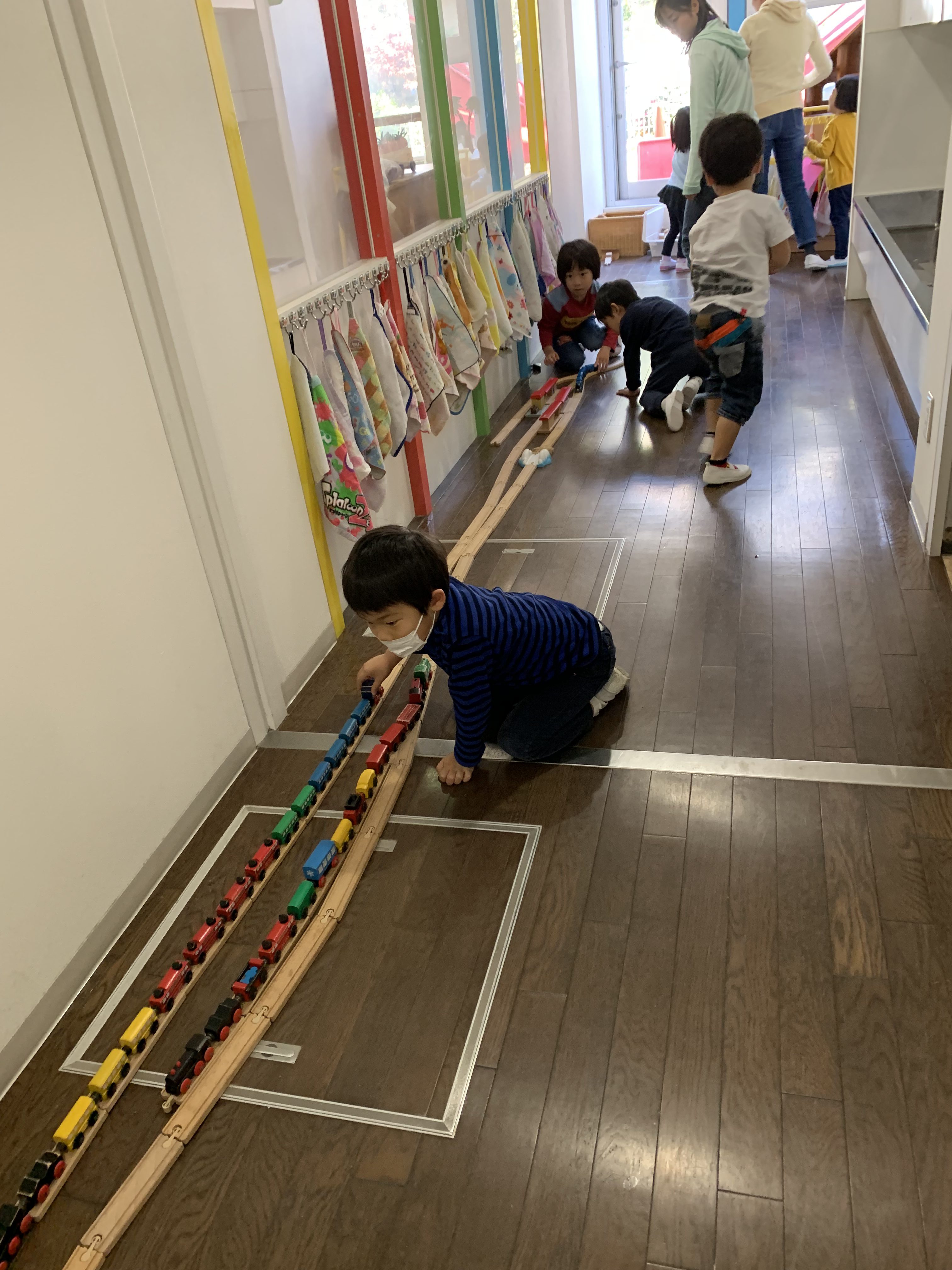 廊下いっぱい使って、電車遊び。