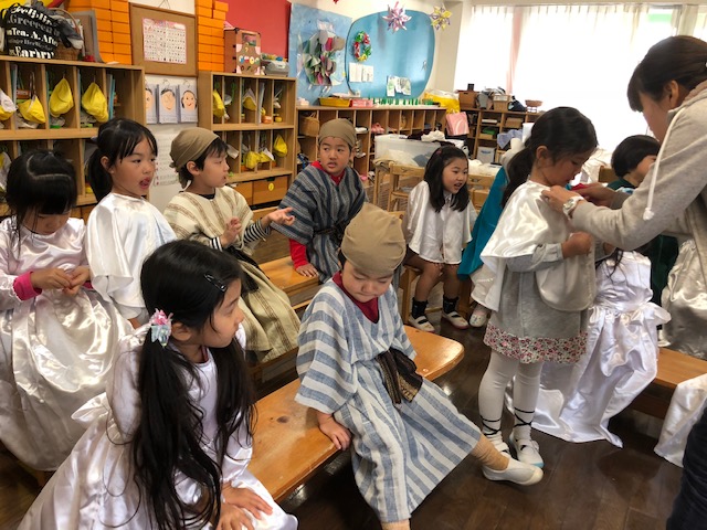 「12月からは衣装を着てページェントの練習をしますよー!」と、声をかけていたので、子ども達はとても嬉しそうでした。