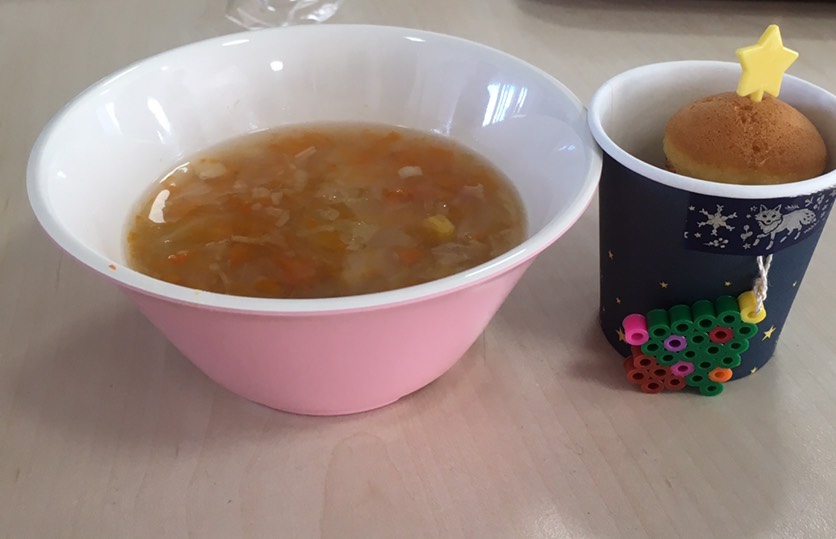 今日は、さくら組のお母様たちが、美味しいスープと鈴カステラを作ってくださいました。グループのお友だちとお話ししながら楽しい時を過ごしました。小さなクリスマスツリーのプレゼントも頂いて、嬉しい1日でした♡