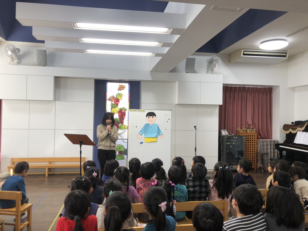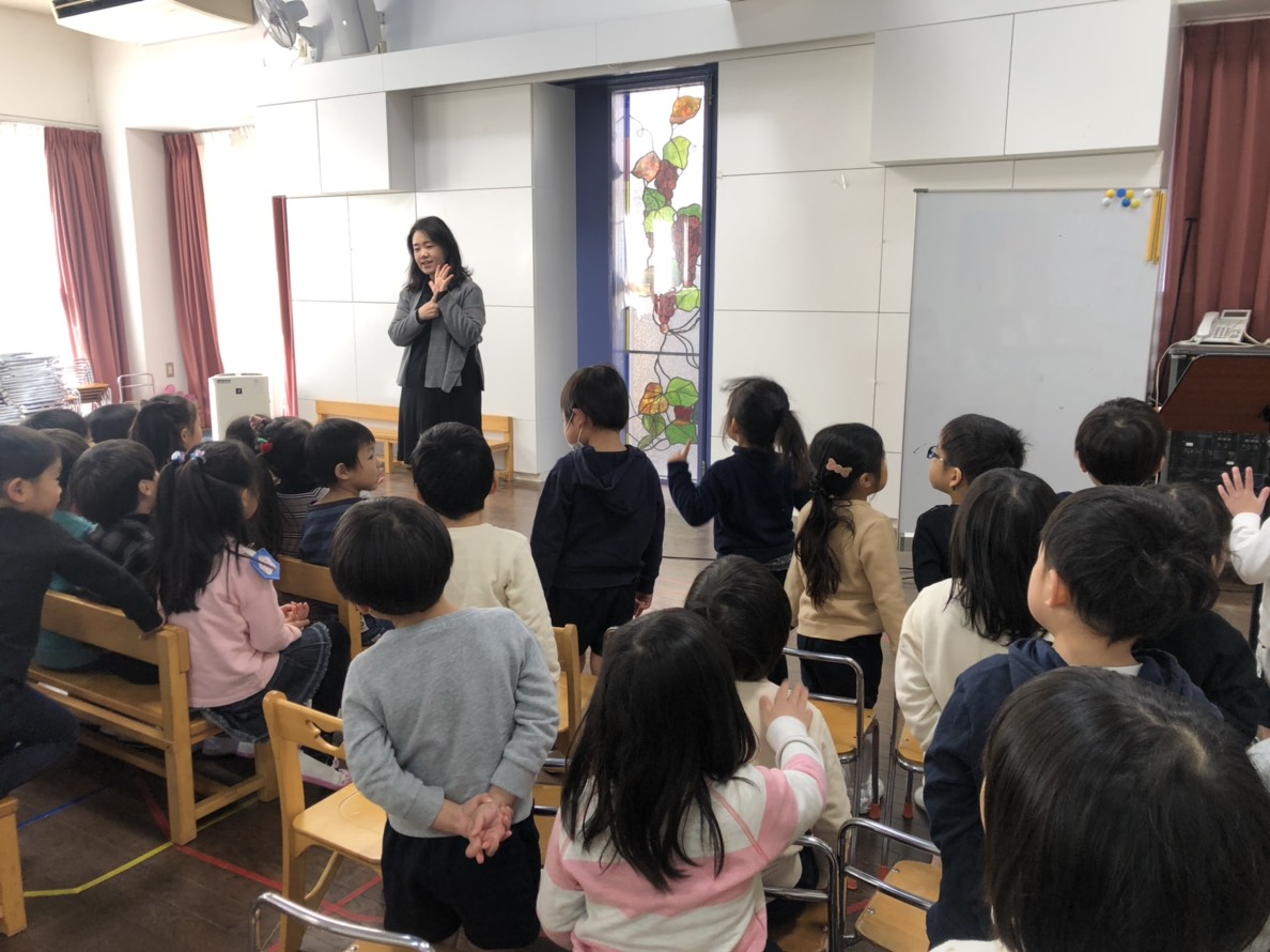 優しくしたり、ありがとうの気持ちをたくさん伝えたりすること…というお話を聴きました。子どもたちは真剣な表情を浮かべて頷いていました。