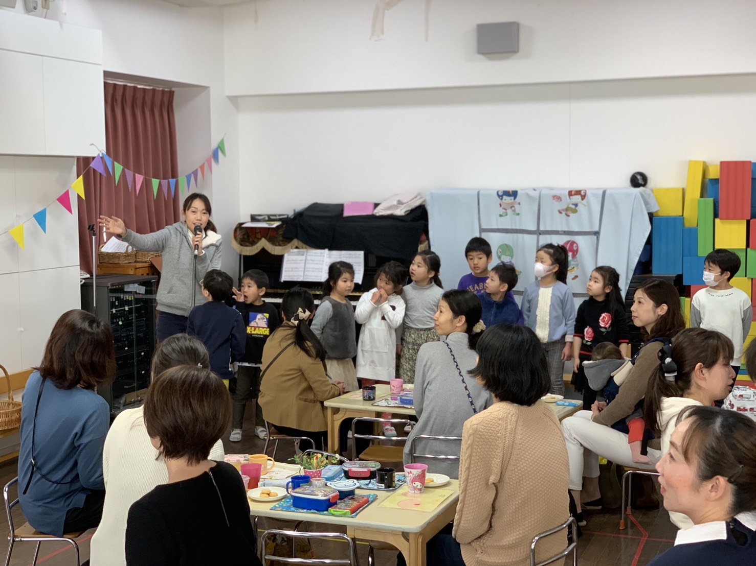 さくら組はおうちの方をお招きして、ランチパーティーをしました。お歌を歌ったり、ランチョンマットやクッキーをプレゼントしました。