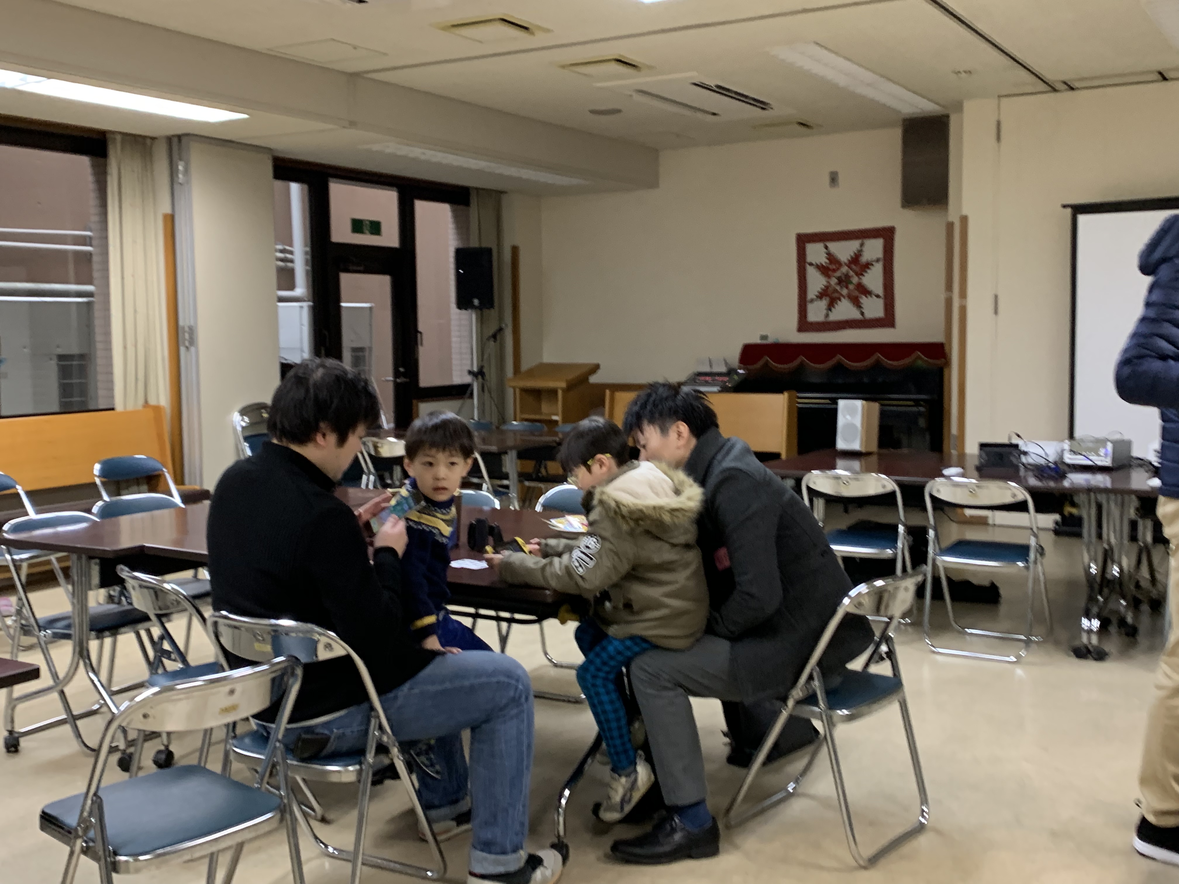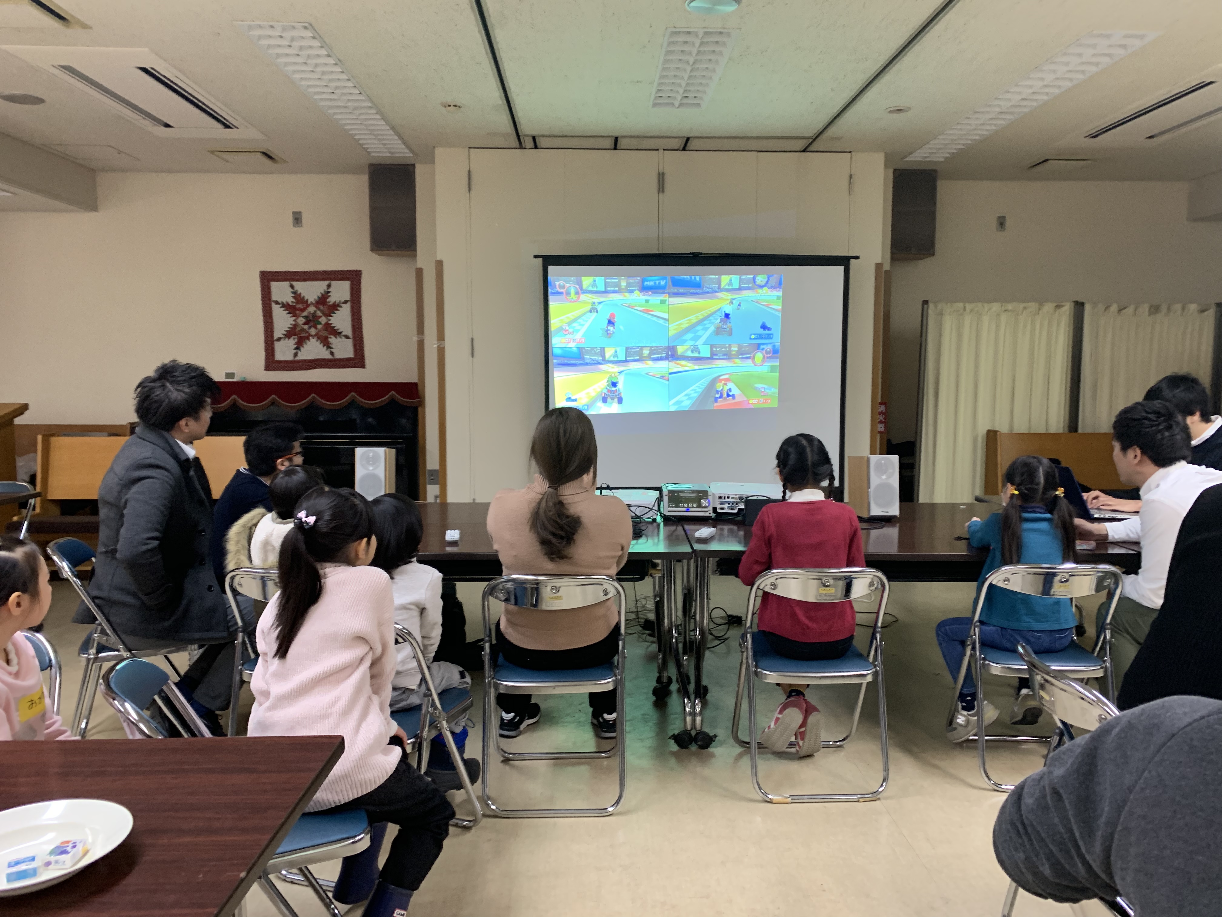 今回は、教会堂の地下でスクリーンを立ててゲーム大会です。懐かしい卒園したお友だちも来てくれました。