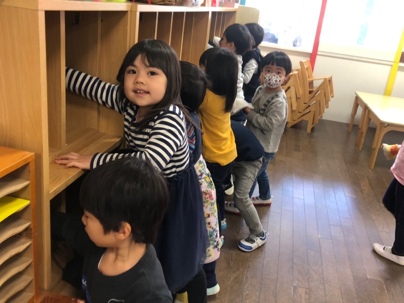 子どもたちは、もうすぐ年中…たんぽぽ組になることに期待を膨らませています。