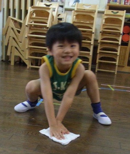 1学期過ごしたお部屋を、雑巾を持って大掃除!