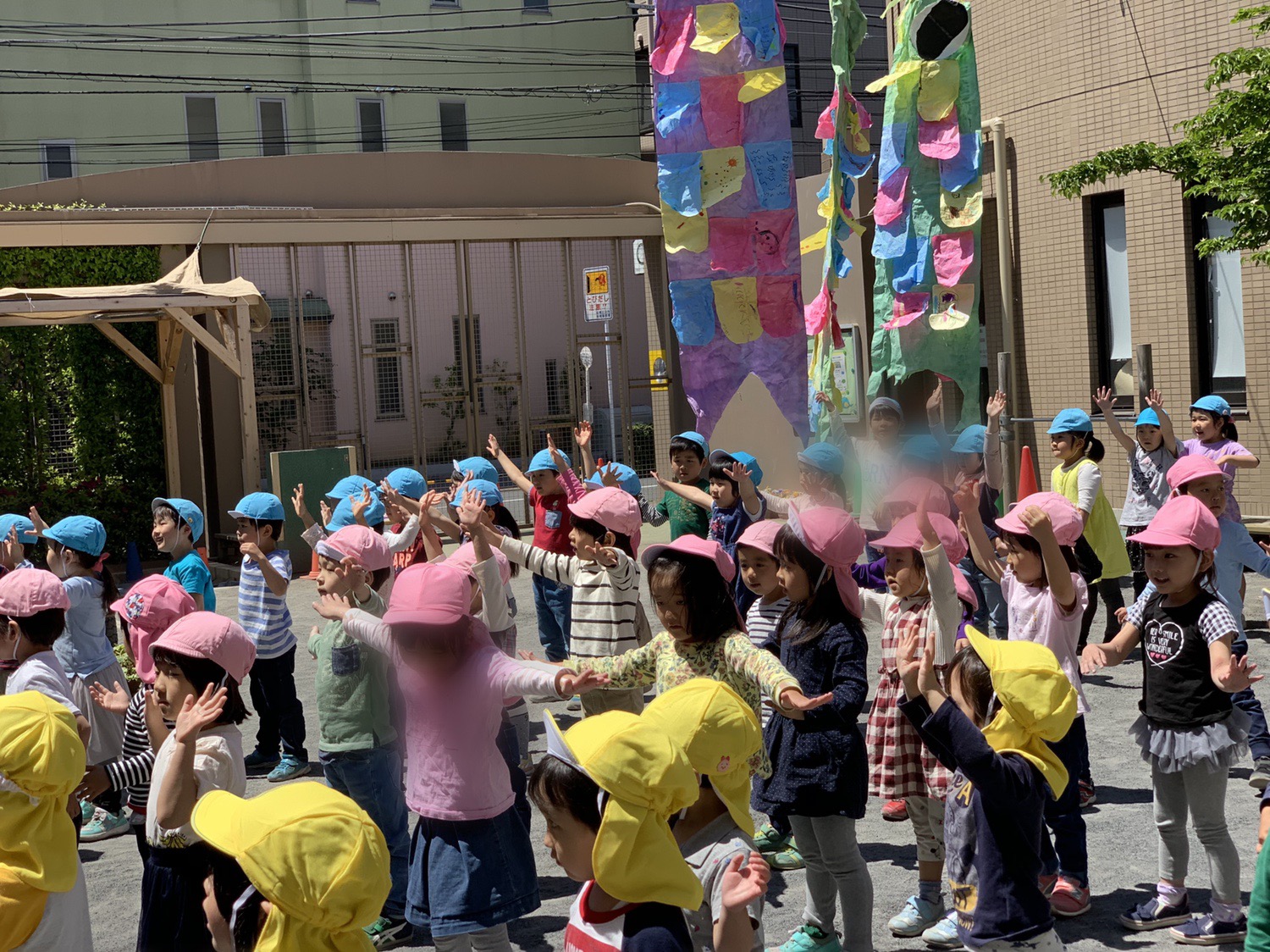 今日は、全園児で体操をしました。