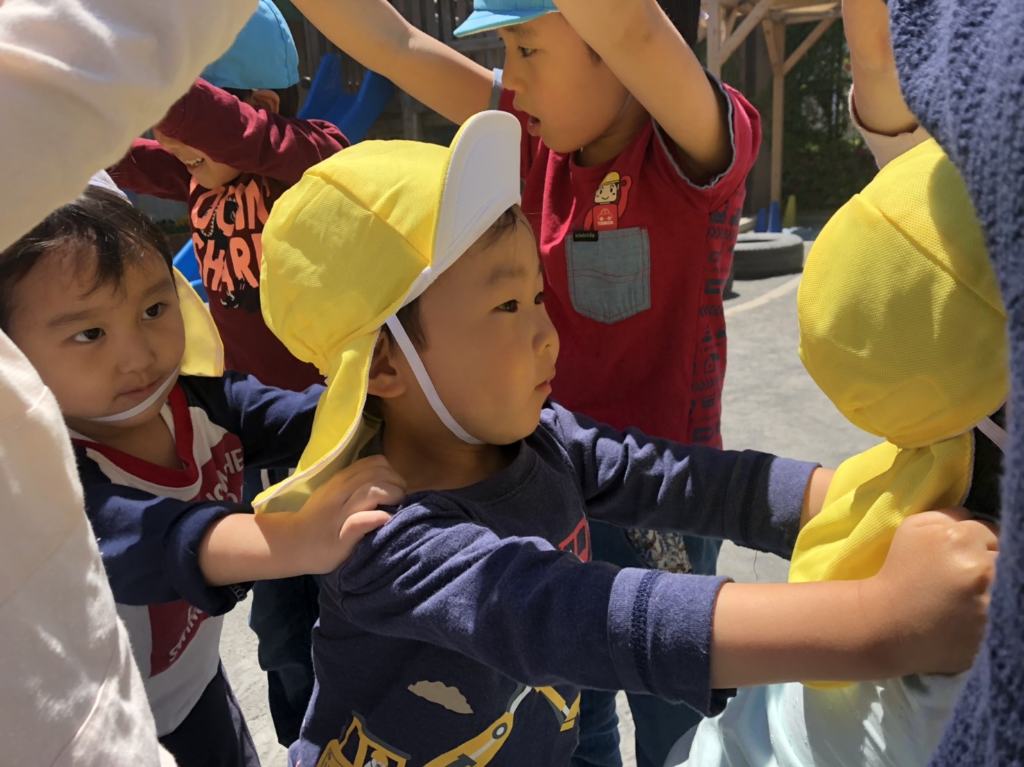 最後は、年長組のお兄さんお姉さんがつくったトンネルの中をくぐりました。