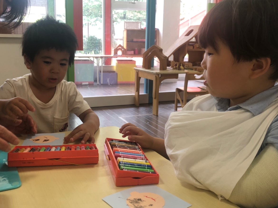 父の日プレゼント製作 今日のひとこま 2019.06.03 年少組では、父の日のプレゼントを作り始めました。 今日は、お父さんの顔を思い出しながらクレヨンで丁寧にお顔を描きました。 どんなプレゼントが出来上がるか…楽しみにしていてくださいね。
