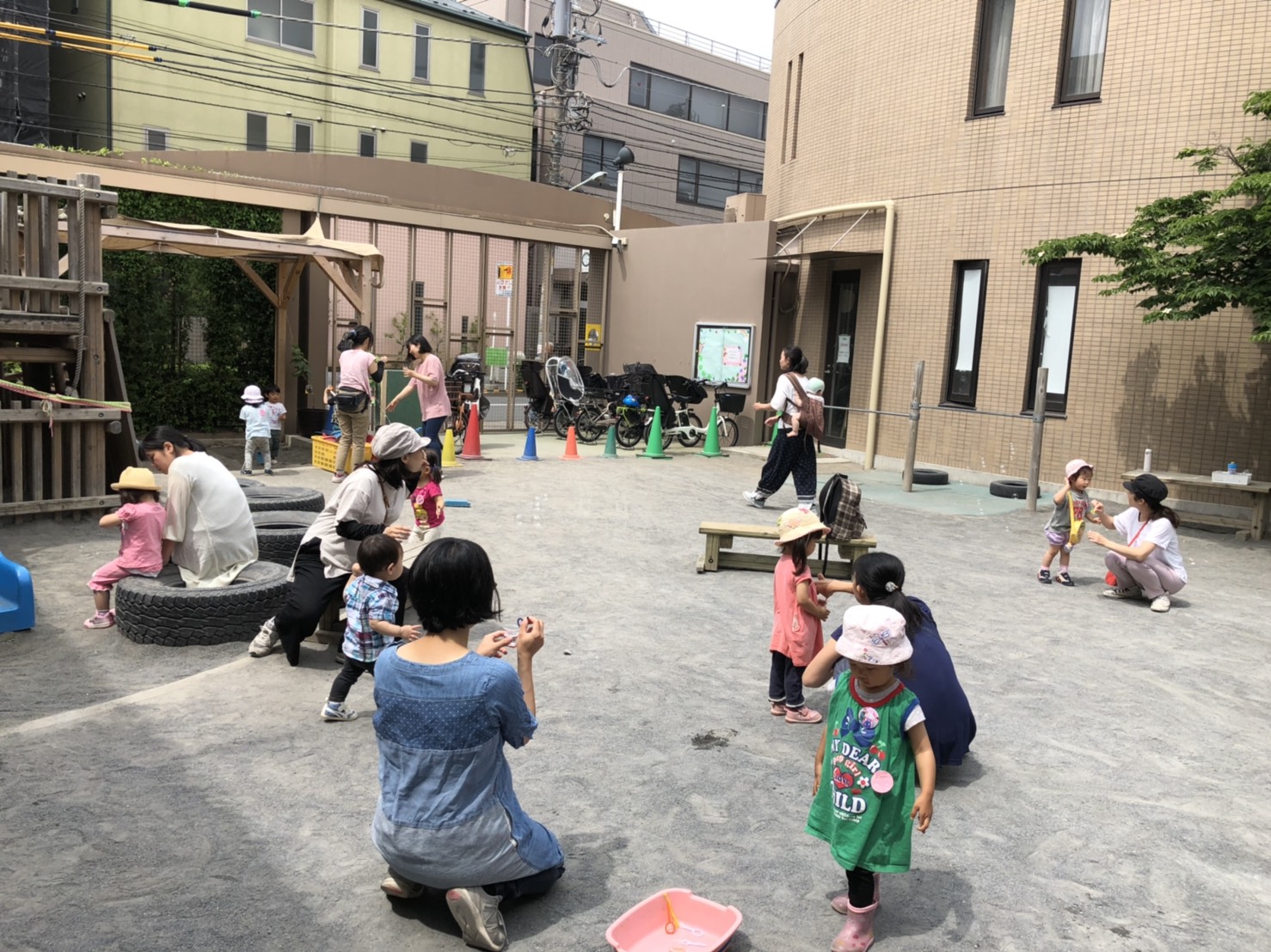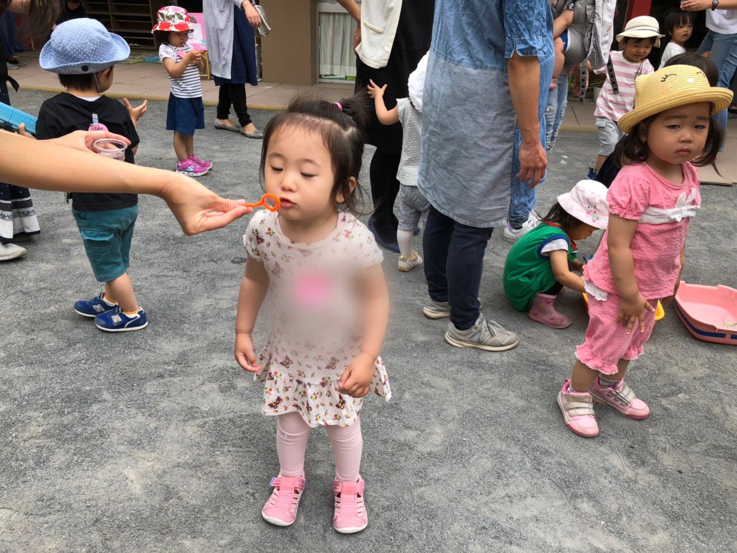 今日のもも組さんは、園庭でしゃぼん玉や、砂場遊び、憧れの高いすべり台をしました!はしごを登って滑り降りてくると、自信がついて、もも組さんの顔つきがひとまわり大きくなった様に感じました!お部屋に戻って、『できるかな?あたまからつまさきまで』エリックカールの絵本を見て、できるかな体操もしました!朝の会・礼拝後には、しずか先生の音楽遊びの時間です。お母さんのおひざでガタゴト電車をしたり、ピアノの音と一緒に思いのまま楽器を鳴らして、心地良い時間を楽しみました♪おやつは、チーズクッキーとオレンジのマーゴットでした。今日は、バブルアートの写真立てを父の日のプレゼントとして、持ち帰りました。お父さんにバブルアートのお話ができたらいいですね☆