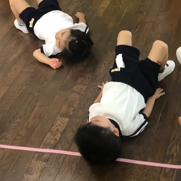 年少組は、ホールで体操をしました。