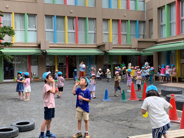 めぐみ幼稚園の子ども達がお外で楽しく遊んでいました。