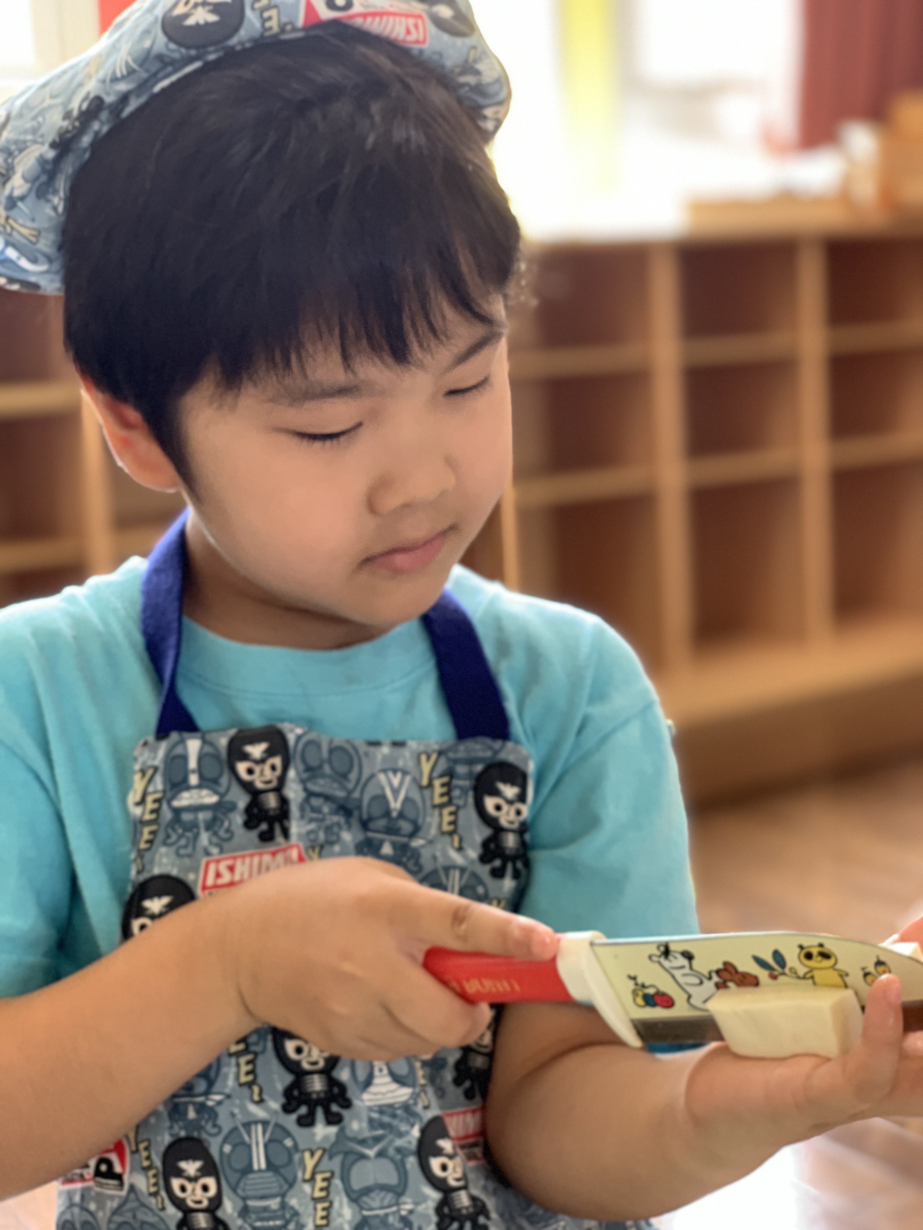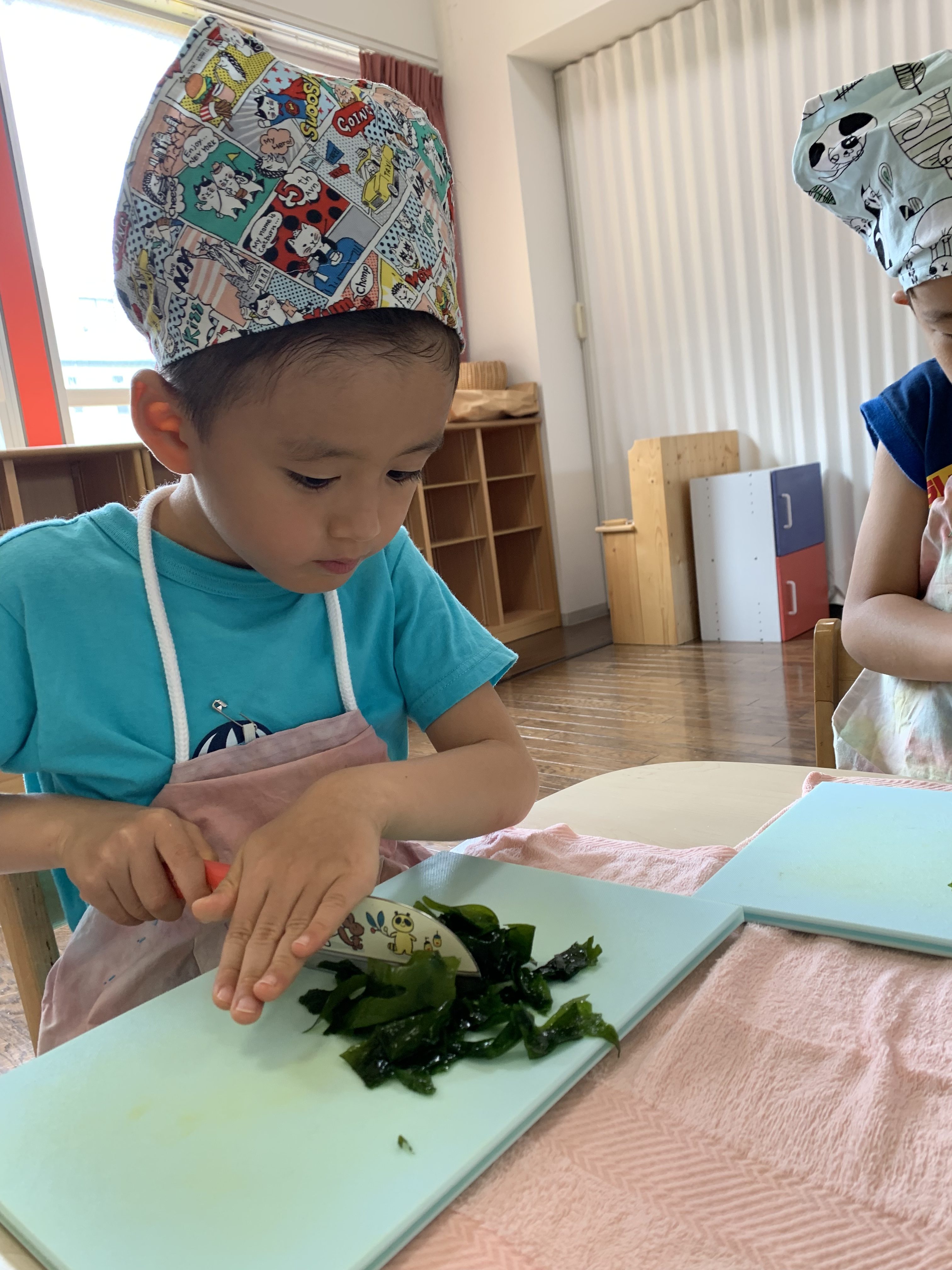 今日は『おにぎりの日』。年長さんが、登園後具材を切ってくれました。