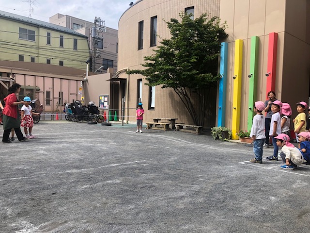 今日は園庭で運動会の練習をみんなで行いました。たんぽぽ組の子ども達はかけっこの時、遠くにいる人にも声が届くように大きな声で返事をしています。とても頼もしい姿です。ダンスも玉入れの練習も毎日頑張っていて、運動会が待ち遠しいです。