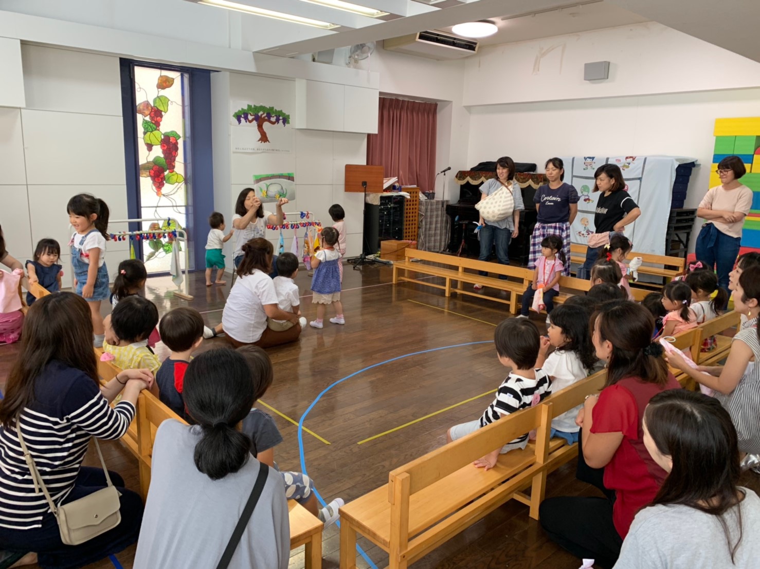 次回のもも組さんは、9月27日(金)製作ぶどう・運動会ごっこ・音楽遊びです。もも組さんに会えるのを楽しみに待っています!9月23日(月・祝)めぐみフェス&教会バザーの代休の為、24日(火)はもも組さんもお休みです。お店やさんに変身した幼稚園でお買い物をしたり、ご飯を食べたり、楽しい時間をお過ごし下さい!
