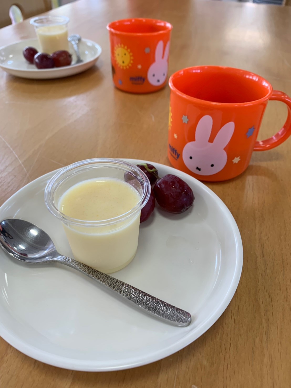 リトミックでは、カスタネットをして、真似っこしたり、自分でリズムをとり、歩き音楽に触れて遊びました。かけっこをして、おやつは手作りプリン(ゼリー)とぶどうでした♪