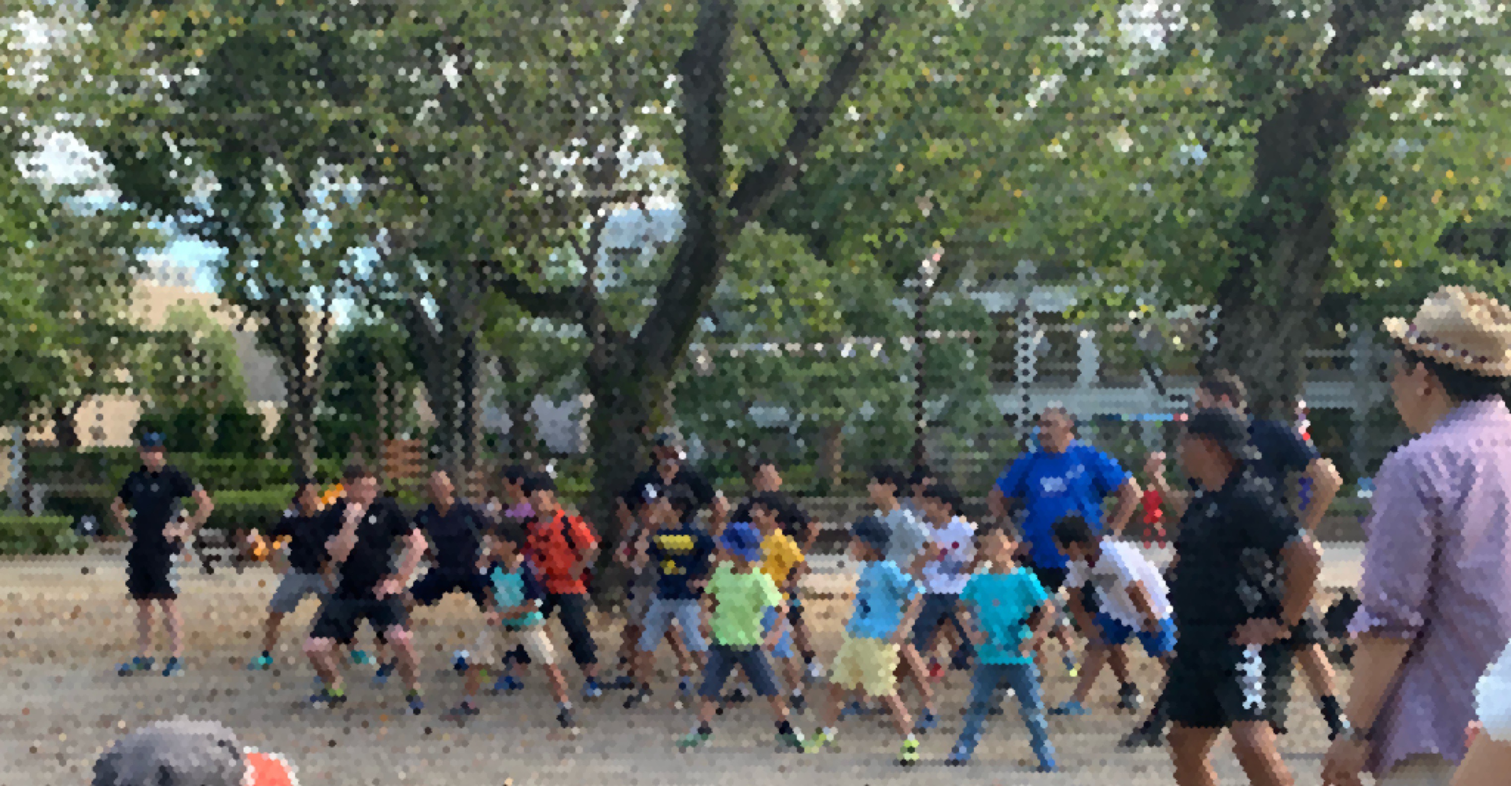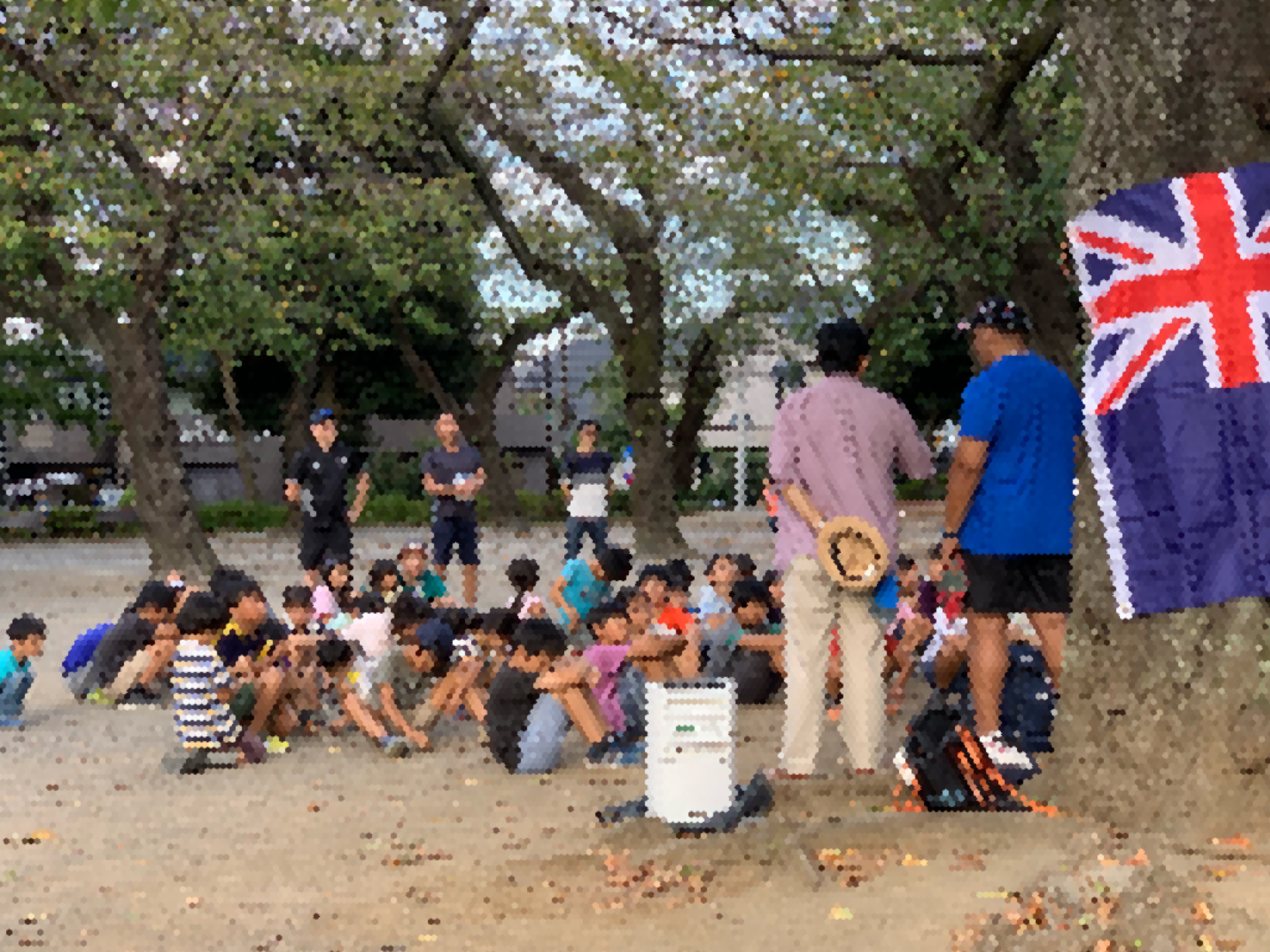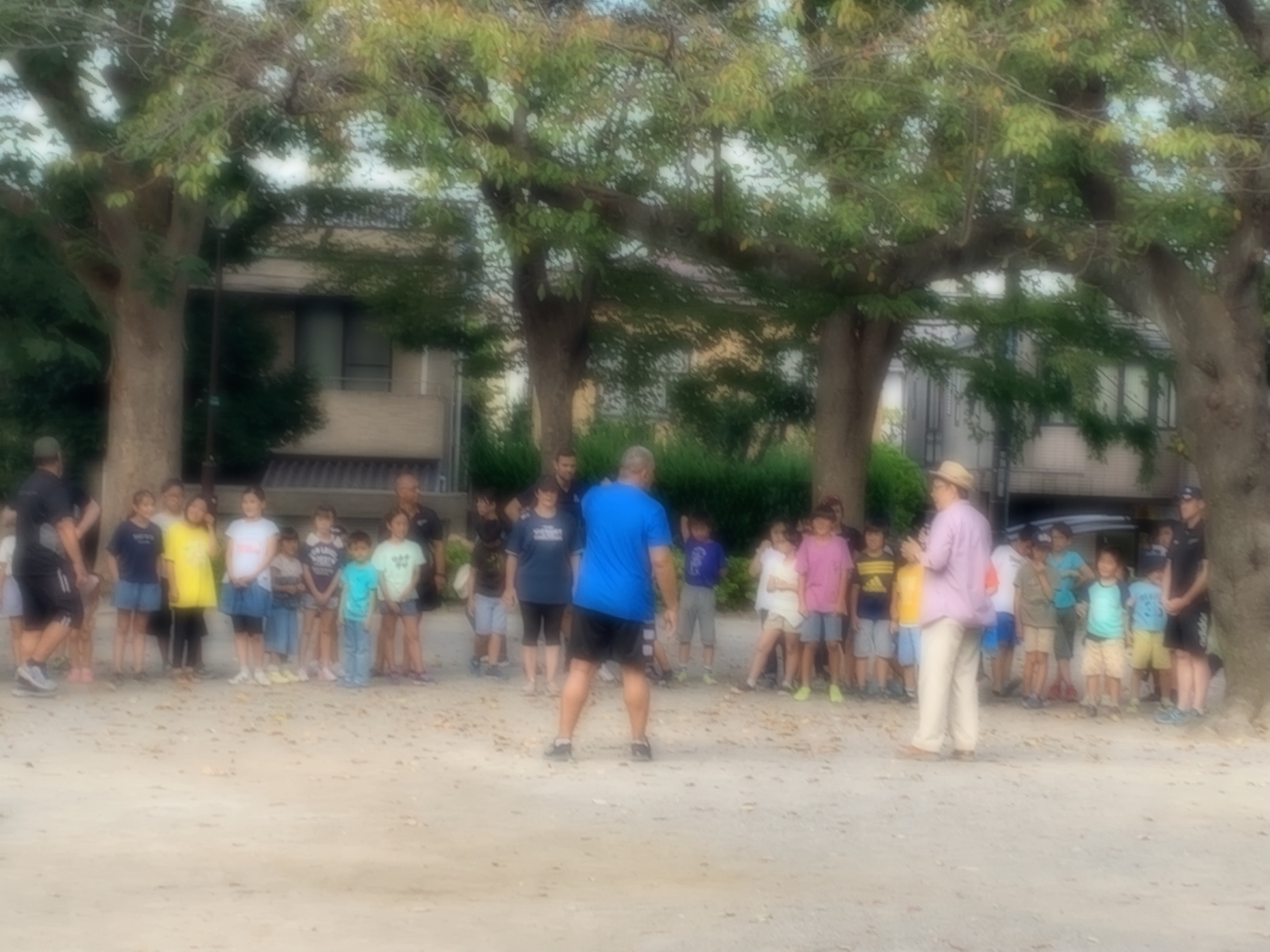 幼稚園で『ラグビー体験会』をしてくださった、ティモ・タガロアさんとニュージーランドサポーターチームの方々は『常盤台公園』に行って、小学生の子どもたちとも交流してくださいました。事前に卒園生に声をかけておいたので、公園には続々と懐かし顔が集まってきました。