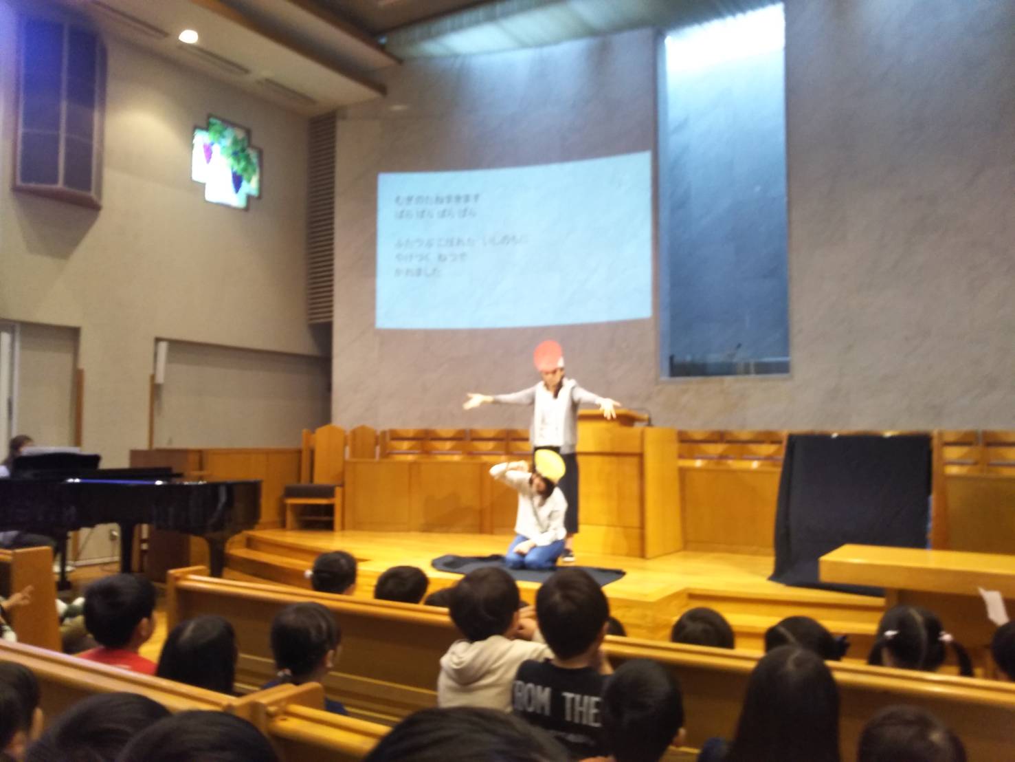 水曜礼拝に参加しました。グレースさんの歌を聞いたり、4つの種の話を聞きました。