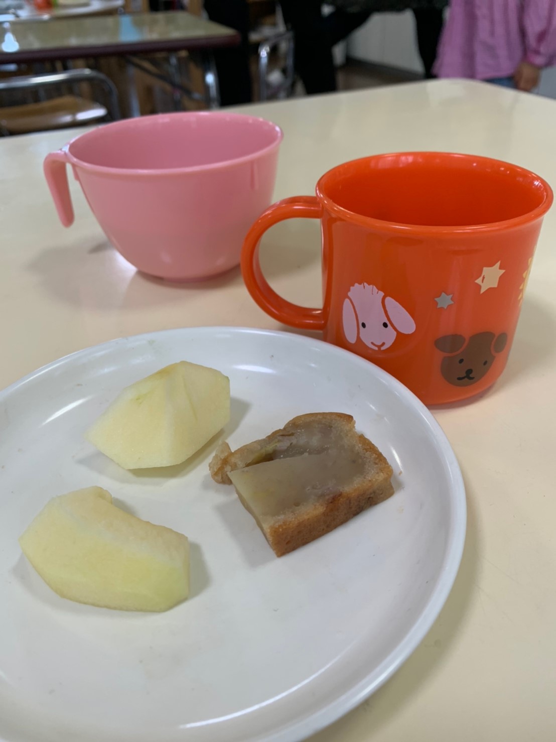 おやつは、手作りのバナナパウンドケーキとりんごでした☆