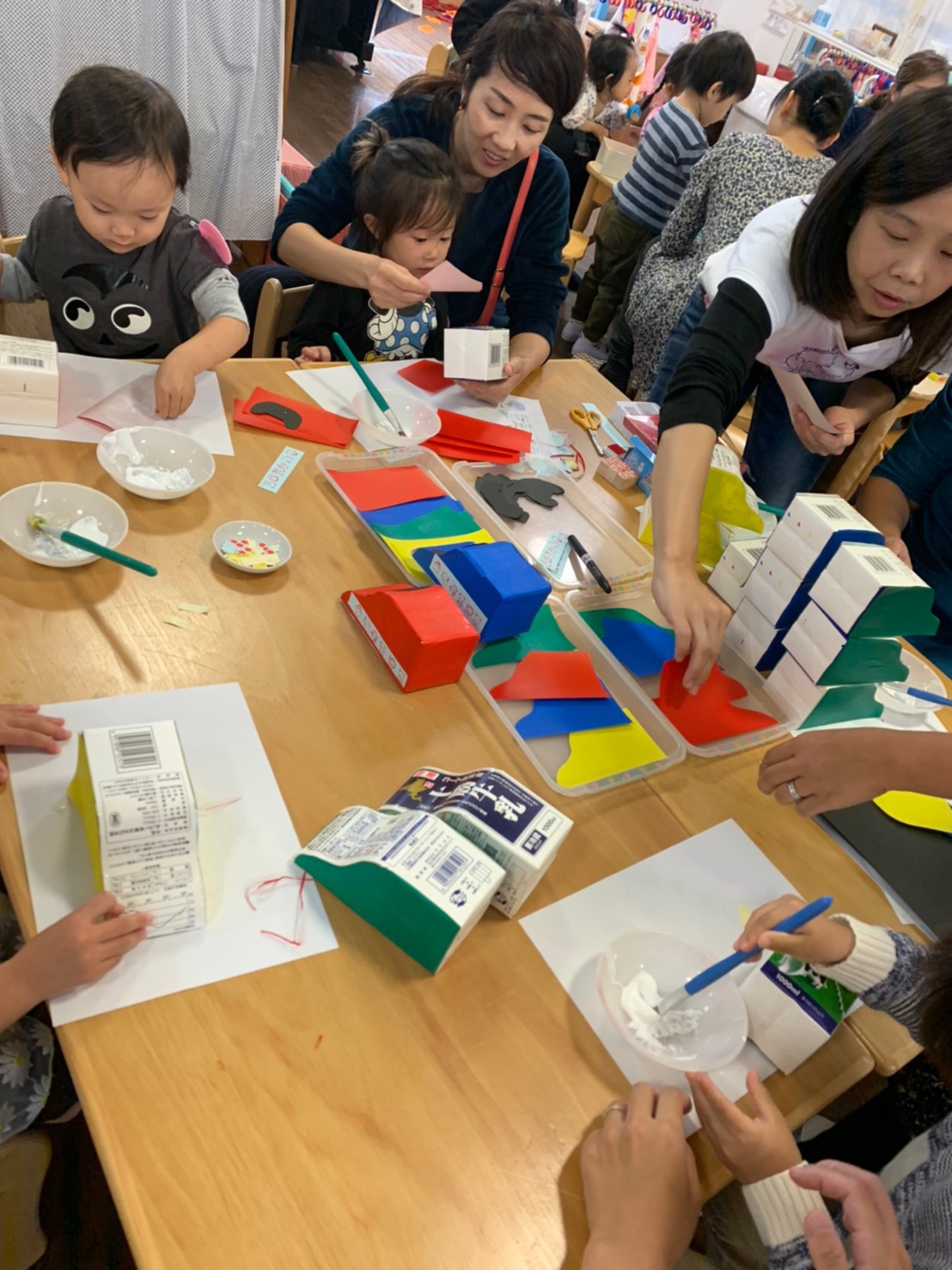 今日のもも組さんは、牛乳パックで新幹線を作りました。牛乳パックにボンドを塗って好きな色の折り紙を貼り、窓やライトもつけ、動物のお客さんも乗せてあげました。シールでデコレーションし、素敵な新幹線になりましたね!お片付けをして、♪きのこ体操をしました。またみか先生ときのこになって一緒に踊りましょうね!朝の会・礼拝をして、9月・10月生まれの9人のお友だちのお誕生日をお祝いしました。音楽あそびでは、大好きなお母さんと触れ合いの時間♪サンドイッチをして、音楽に合わせて、歩いたり、ゆらゆら揺れたり、足踏みジャンプをしました。楽器あそびでは、♪パソ・ドブレのフラメンコのリズムにワクワクして、演奏している様子で、ウィンドチャイムの出番も素敵でした☆