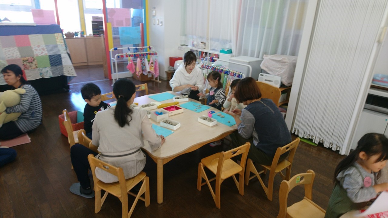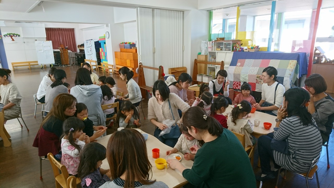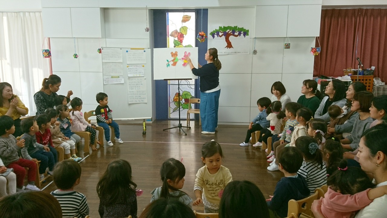 皆大喜びで美味しくいただき、ごちそうさまの後はお母さんのお膝で紙芝居を見ました。