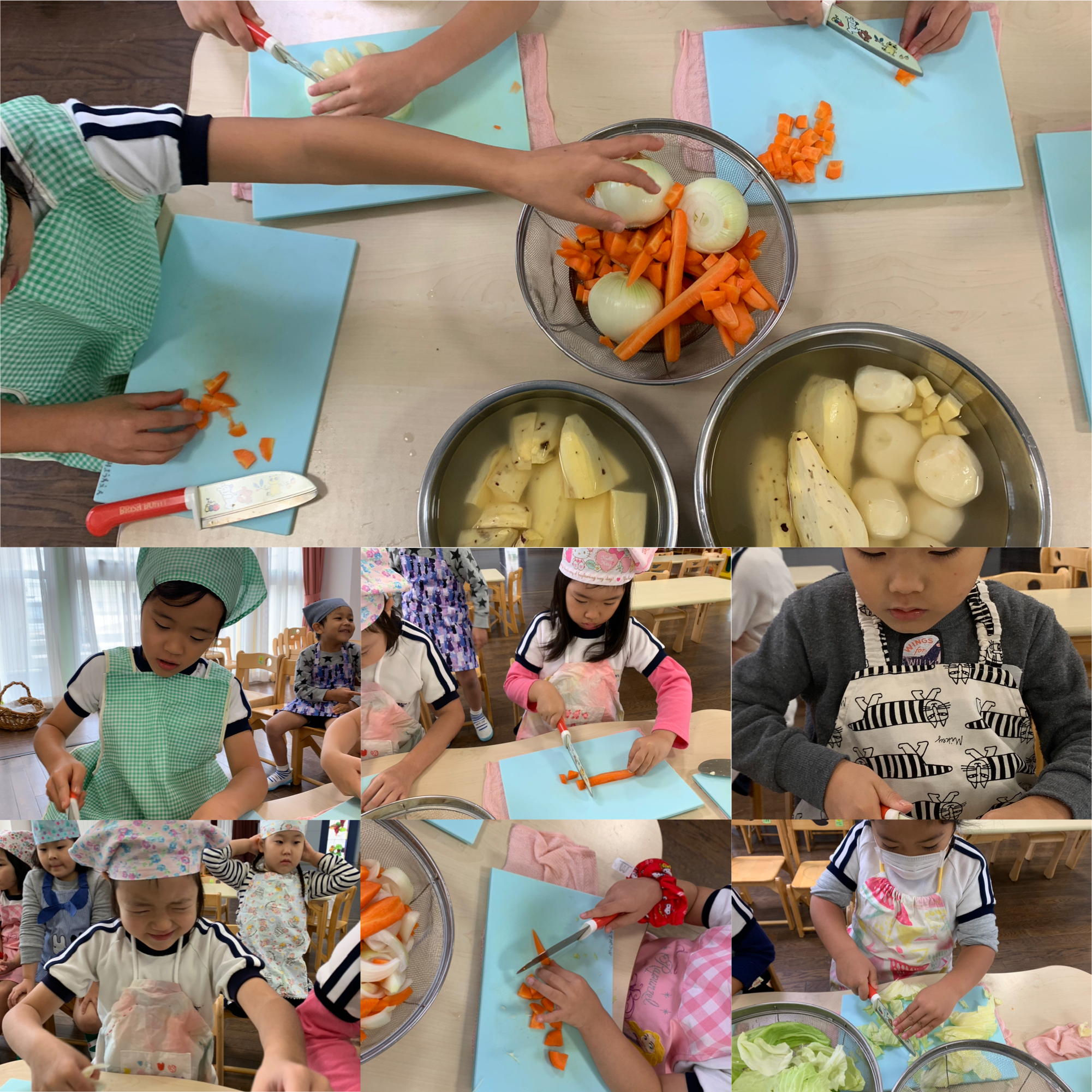 年長組のお料理もとっても慣れてきました。切りにくいものは、無理せずに手を添えたり、細かくすることもできます。