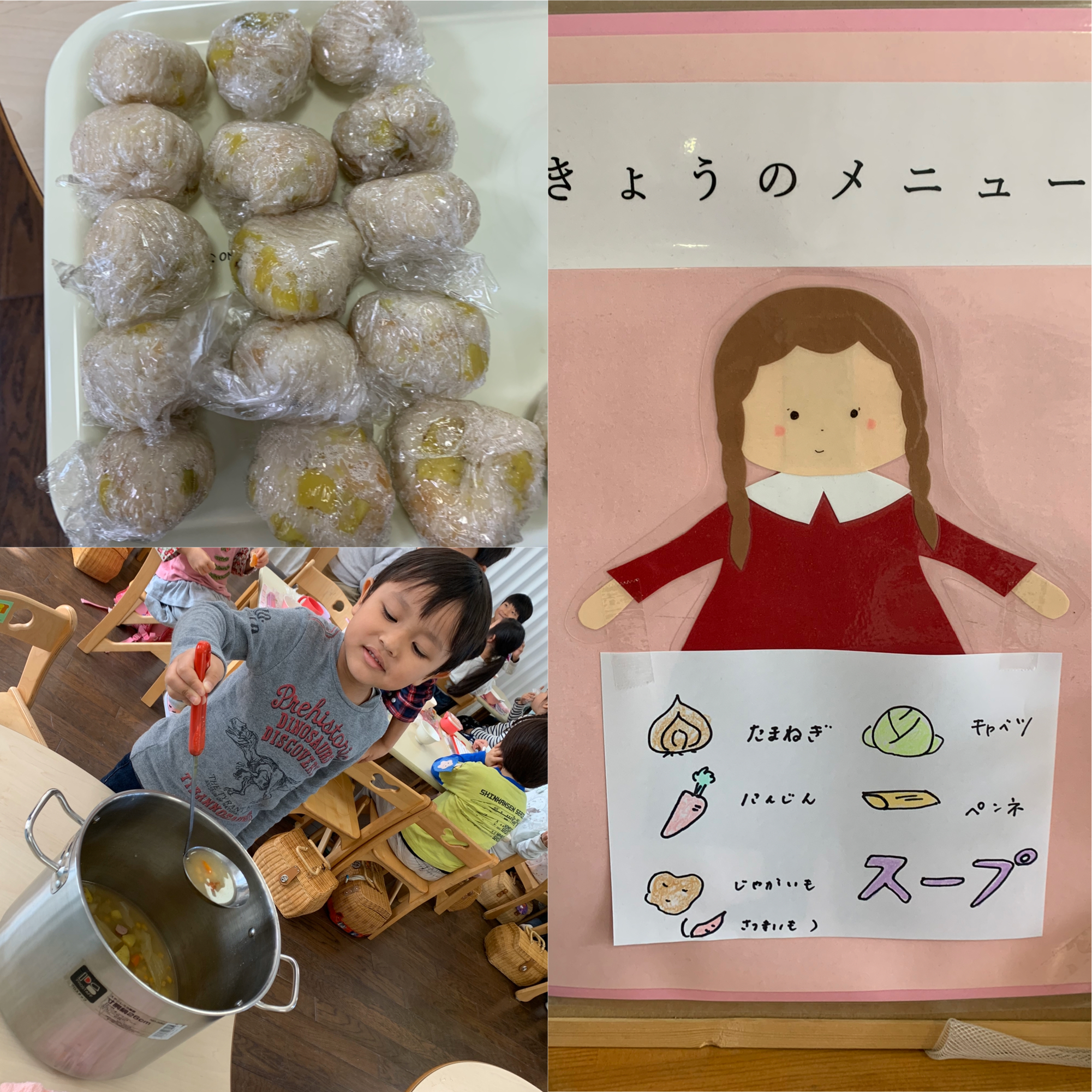 今日は、お芋のおにぎり・スープ