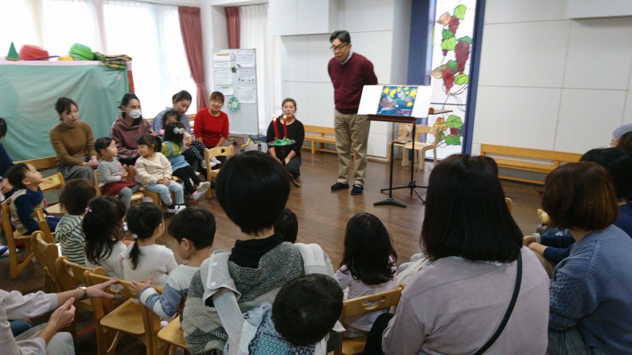 クリスマスのお話を読んでくださり、世界で最初のクリスマスの出来事を覚えてお祈りしました。