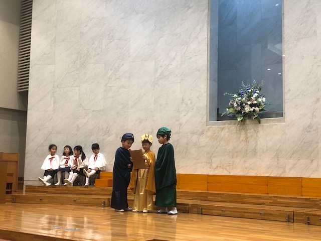 今日めぐみ幼稚園のみんなはページェントの衣装を全部着て練習しました。素敵な衣装を着ると、嬉しい様子が見られ、みんな張り切って頑張っていました。