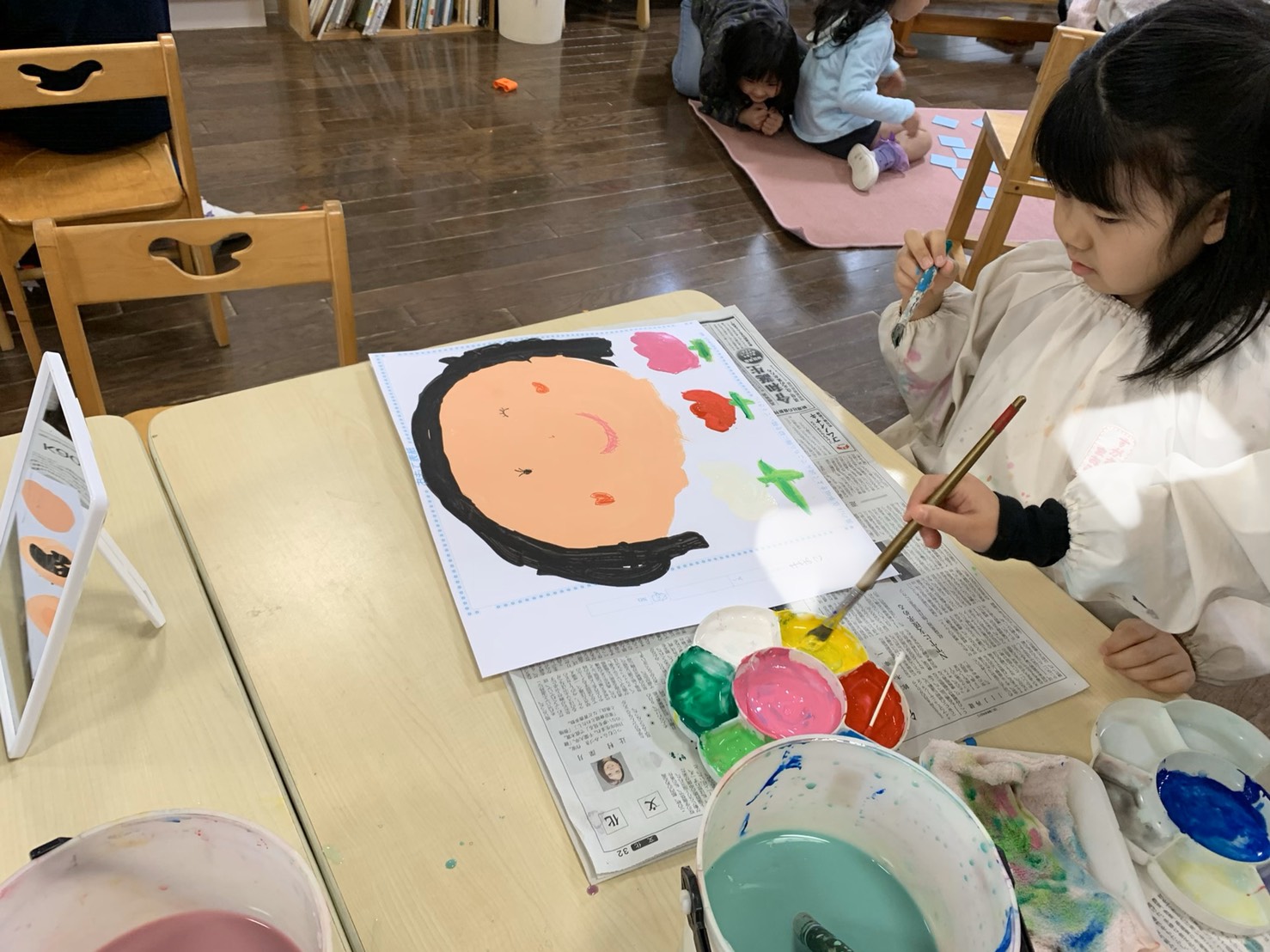 自分の顔を描いて、模様を描いて。。。世界にたった一つの表紙が出来ました。さあ、どんなアルバムが出来上がるのでしょうか?楽しみです!