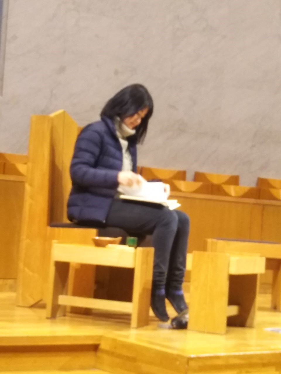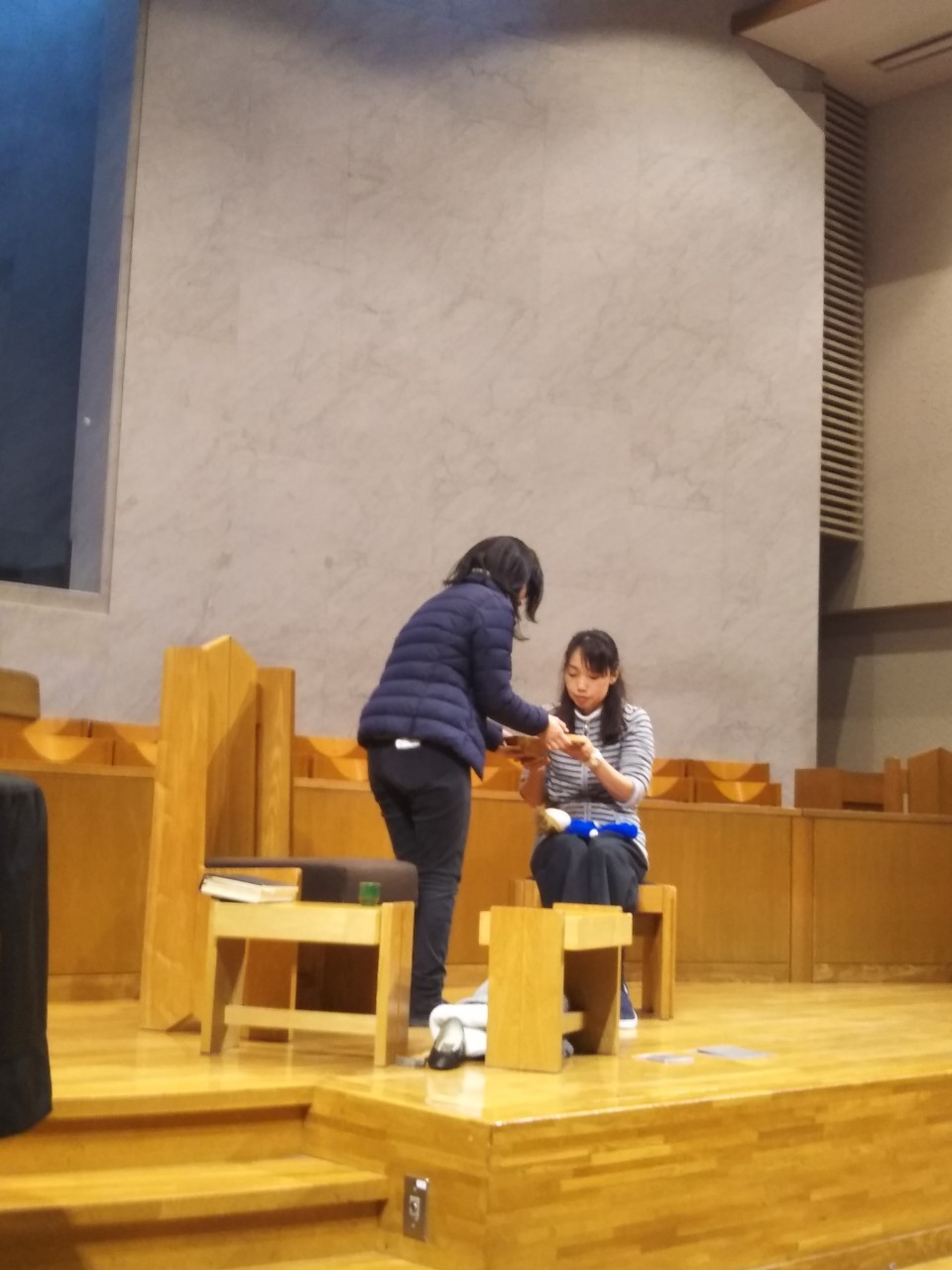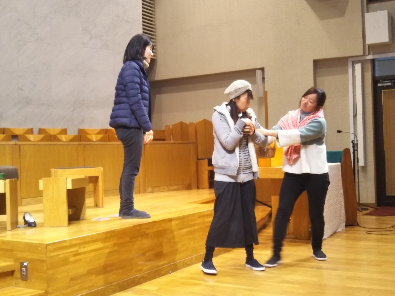 先生方の劇『靴屋のマルチン』のお話を子ども達は集中して聞いていました。