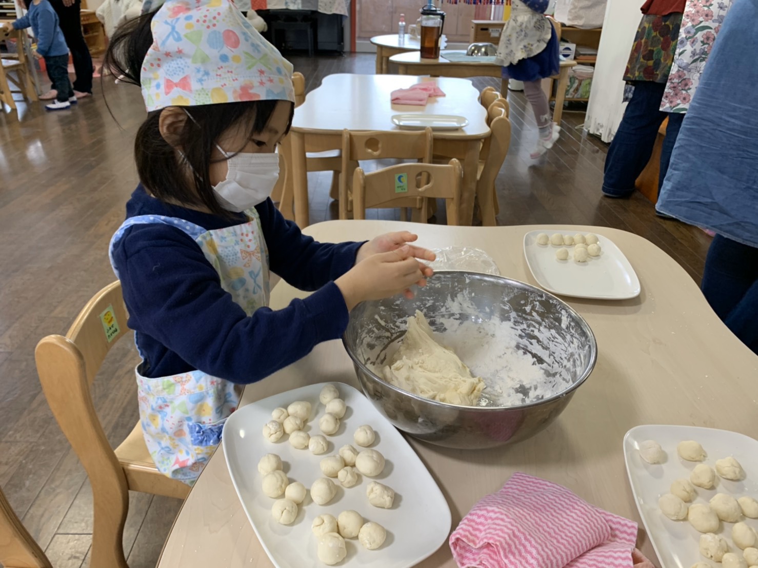 今日は、年中さん、年少さんが、すいとんを作ってくれました。年長さんは「美味しい!」と、おかわりしていました。具だくさんで、おなかもいっぱいになりました。