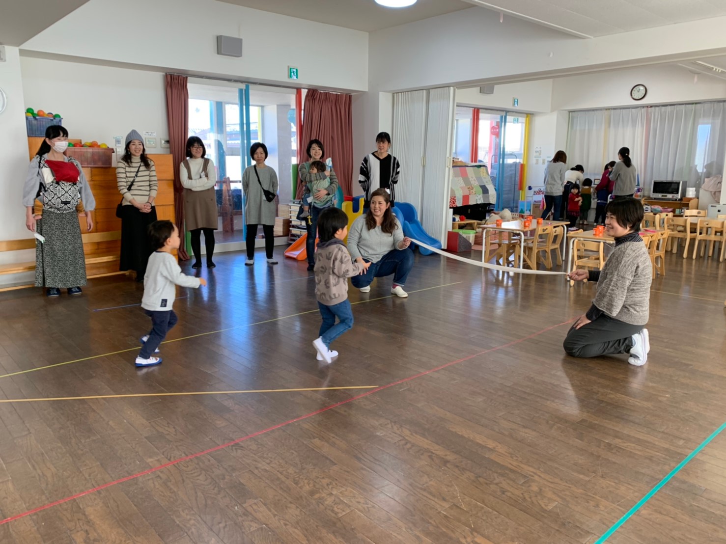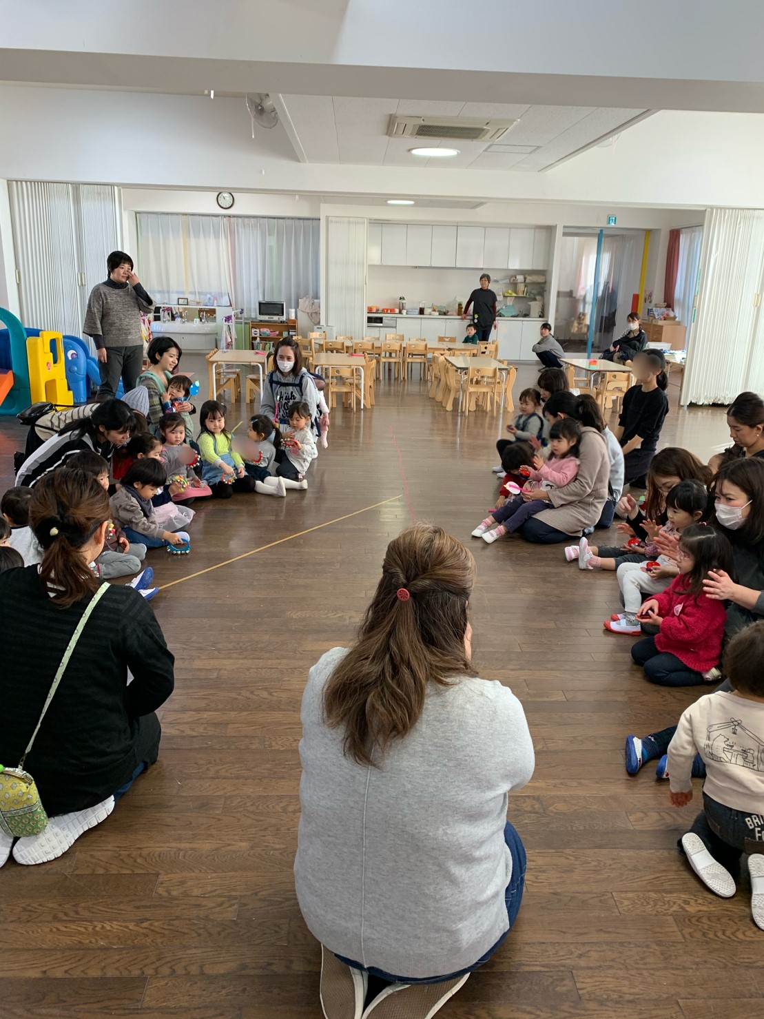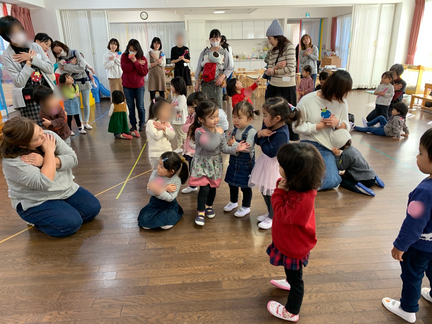 次回は、2月4日(火)在園児交流(自由遊びの時間ホールにゆり組さんをご招待)・リトミックです。元気に登園できますように、待っています。