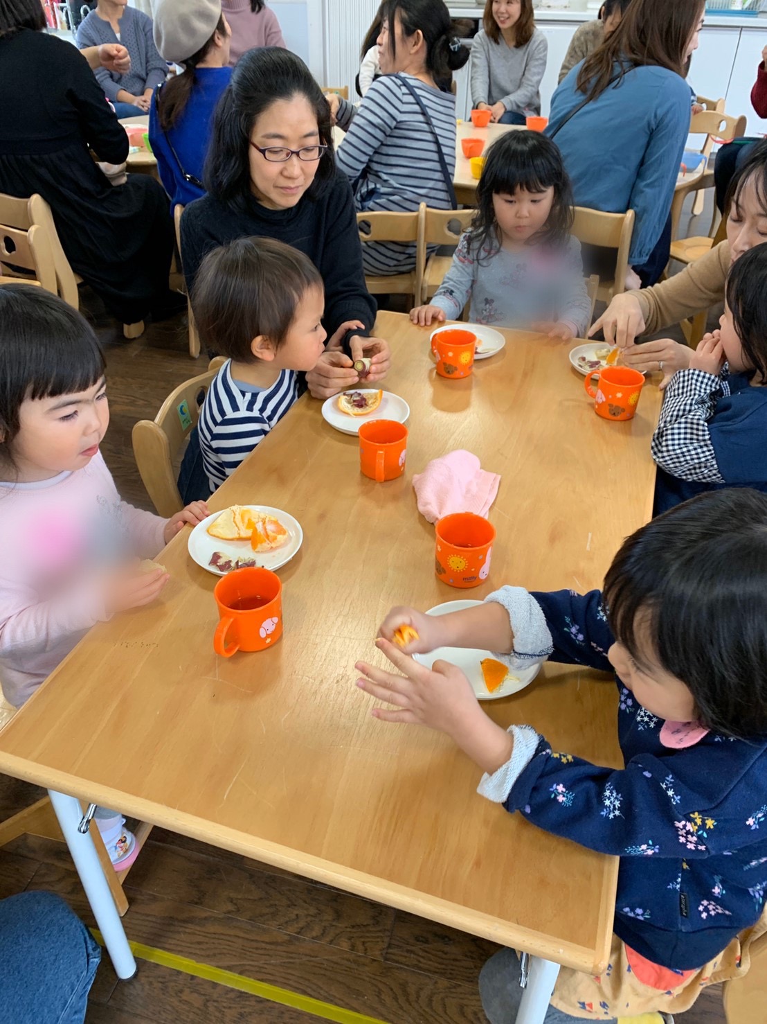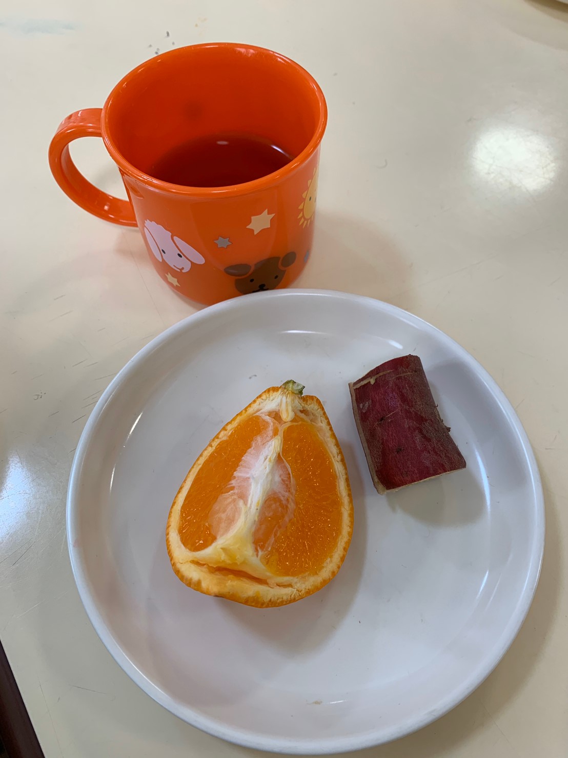 今日のおやつは、お芋とみかんでした。
