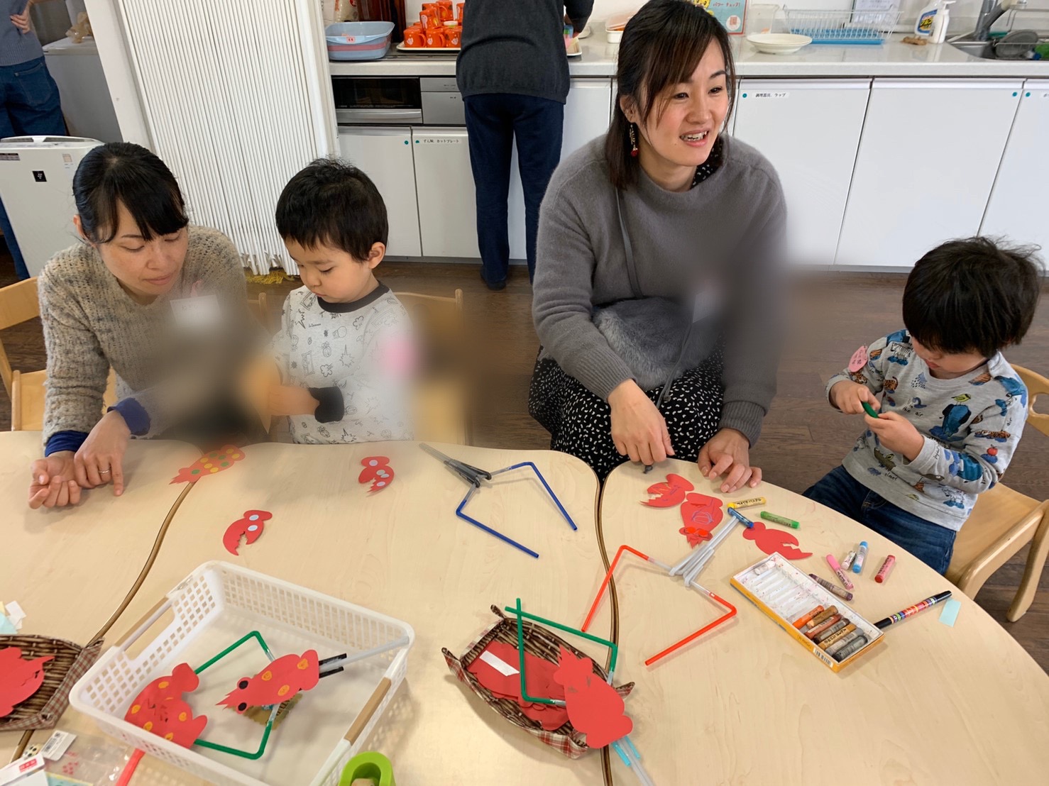 手が動くザリガニハンドを一緒に作りましたが、ゆり組さんは自分でどんどん作ることができて、1年の成長を感じる瞬間でもありました。