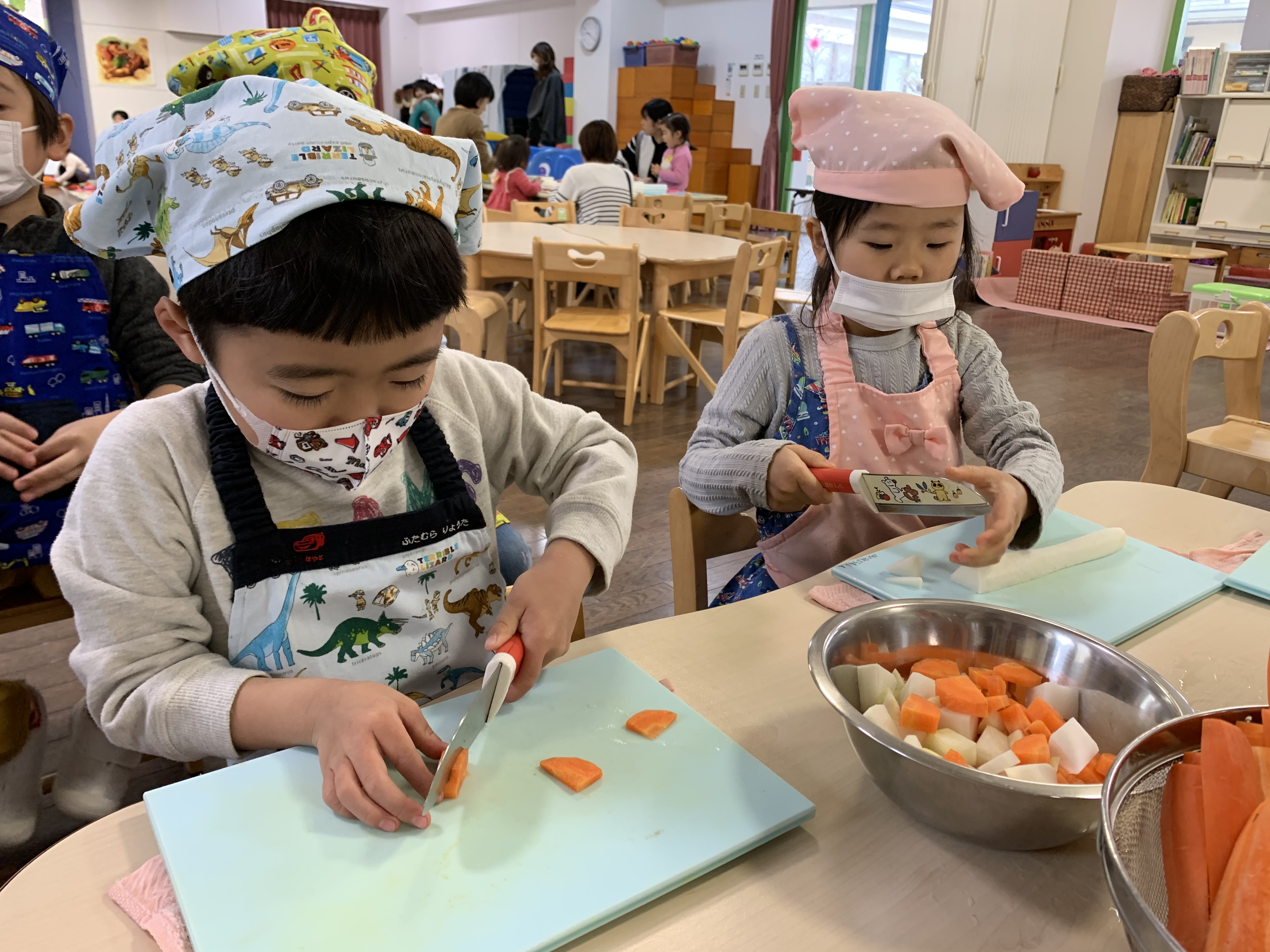 ゆりさんとたんぽぽさんで、すいとんを作りました。包丁もとても上手に使えるようになりましたね‼︎