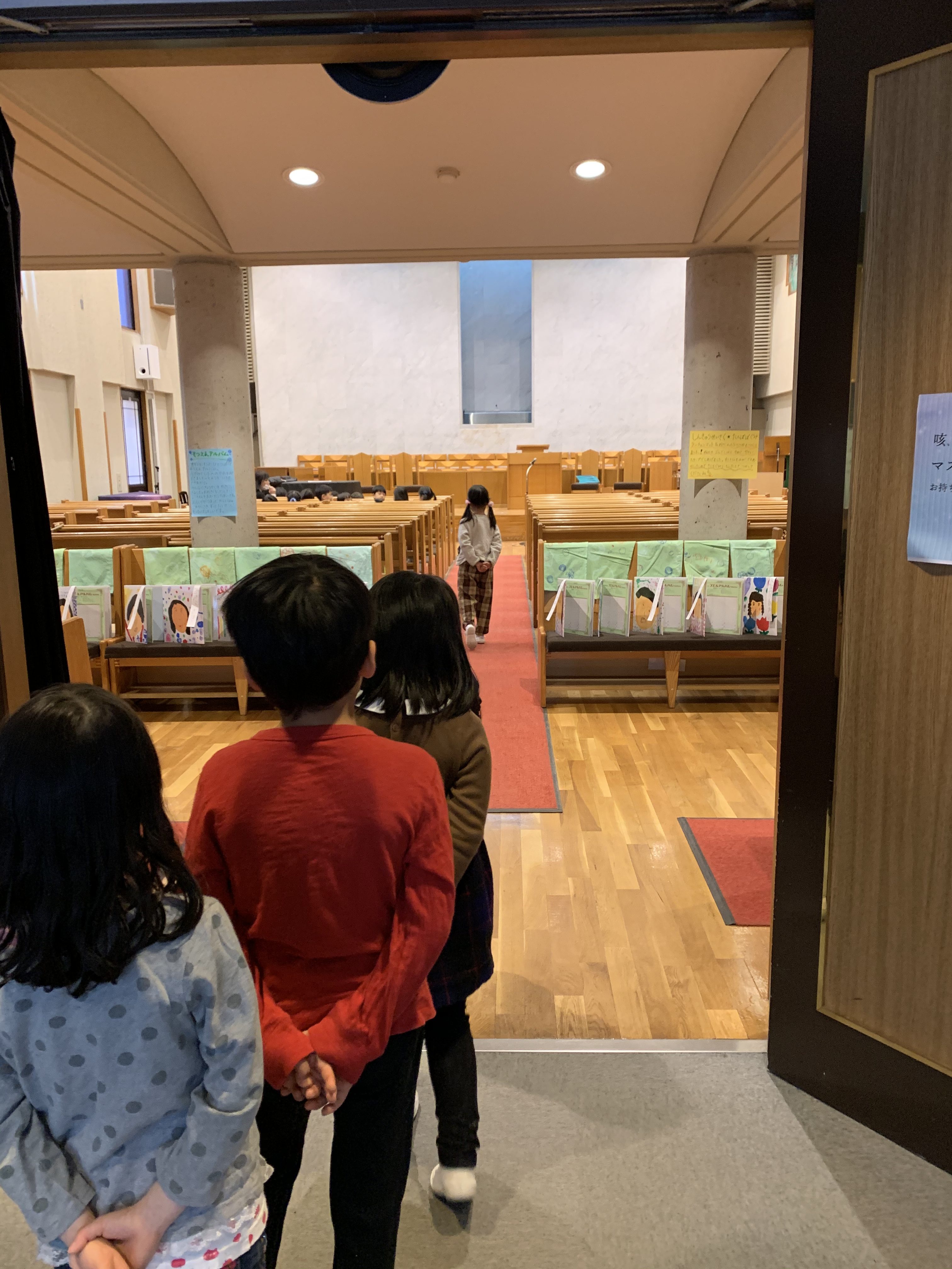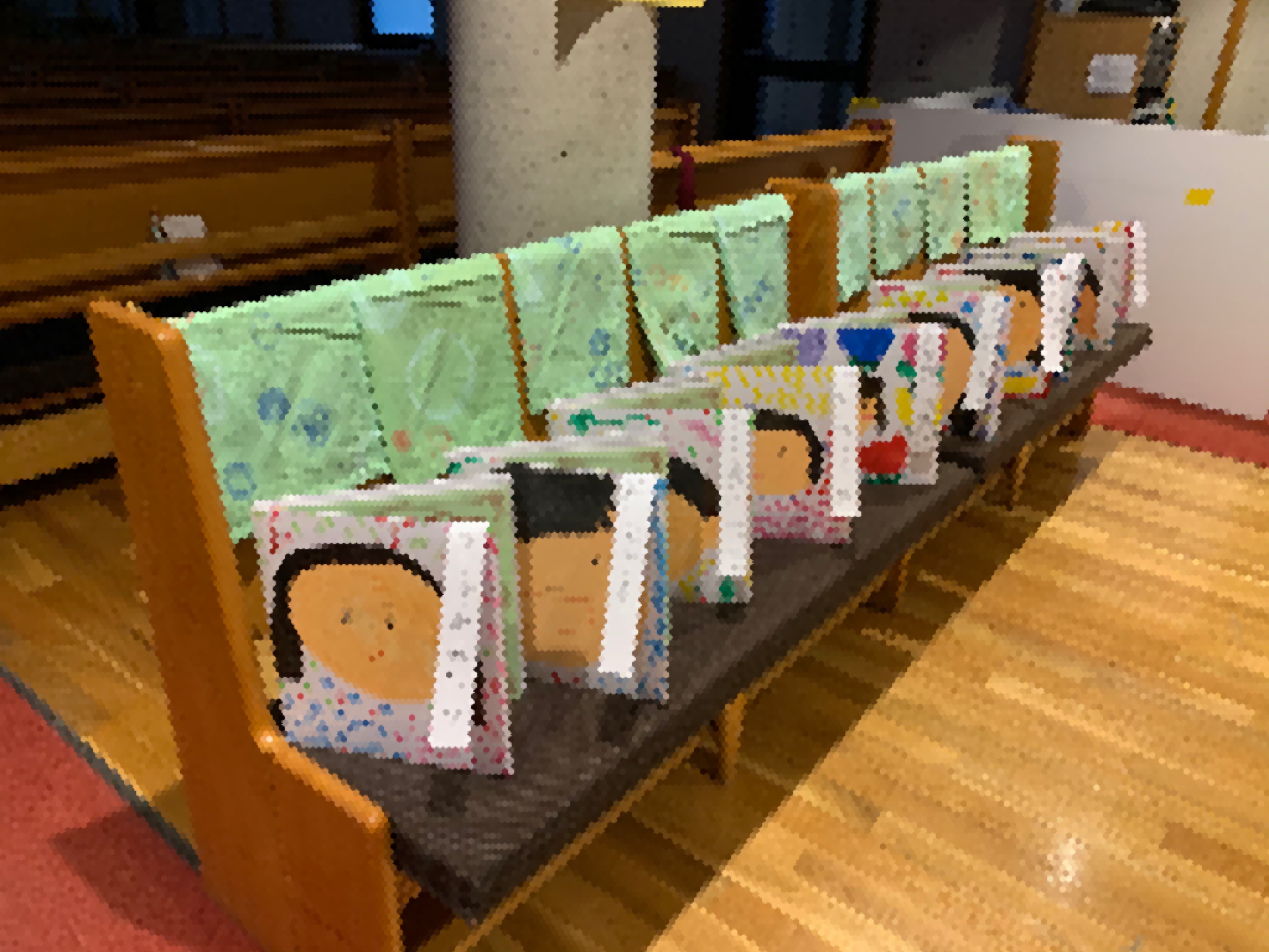 今回は、特別に教会堂が『展示会場』となり、子どもたちの作品を飾りました。