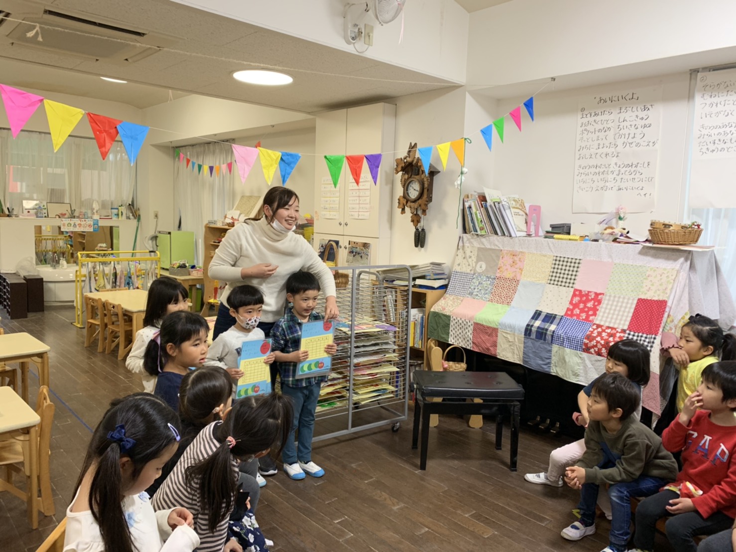 幼稚園生活最後の1日の年長さんは、朝から大忙し‼︎ 来年度のインフォメーションボード作りや『あゆみのふくろ』作り。小さなお友だちからプレゼントをもらったり…届けに行ったり。。。