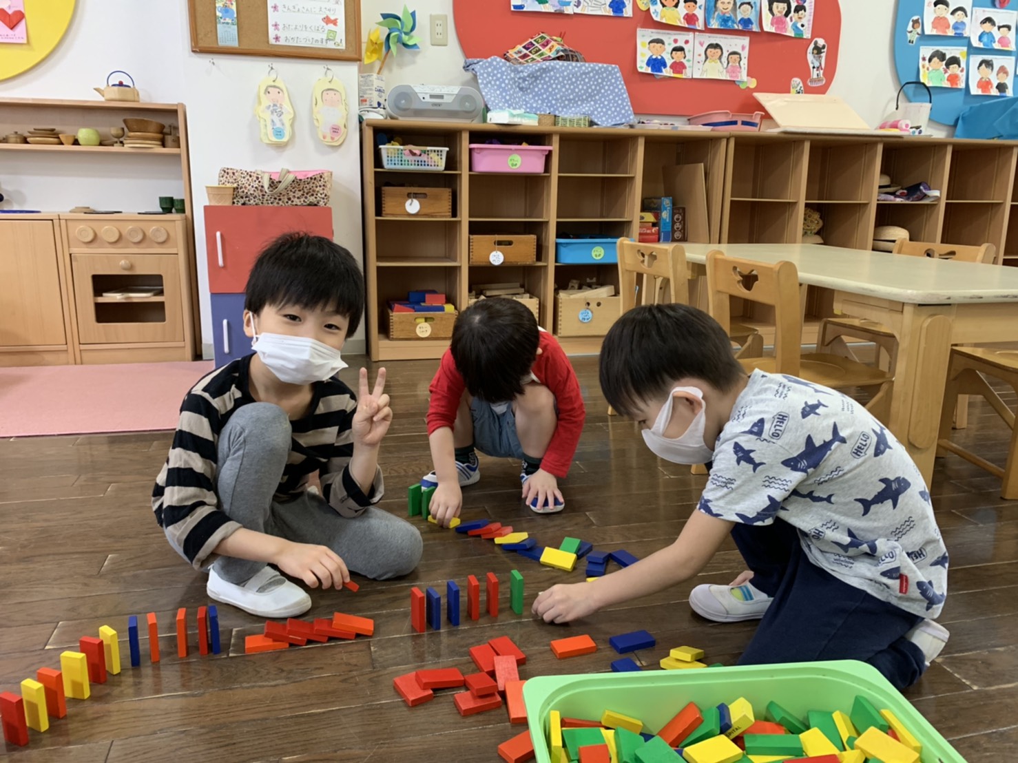 短い時間でしたが、お友だちと久しぶりに会い、好きな遊びを楽しんでいました。年長組のお部屋にしかないおもちゃもあり、うれしそうに遊んでいました。