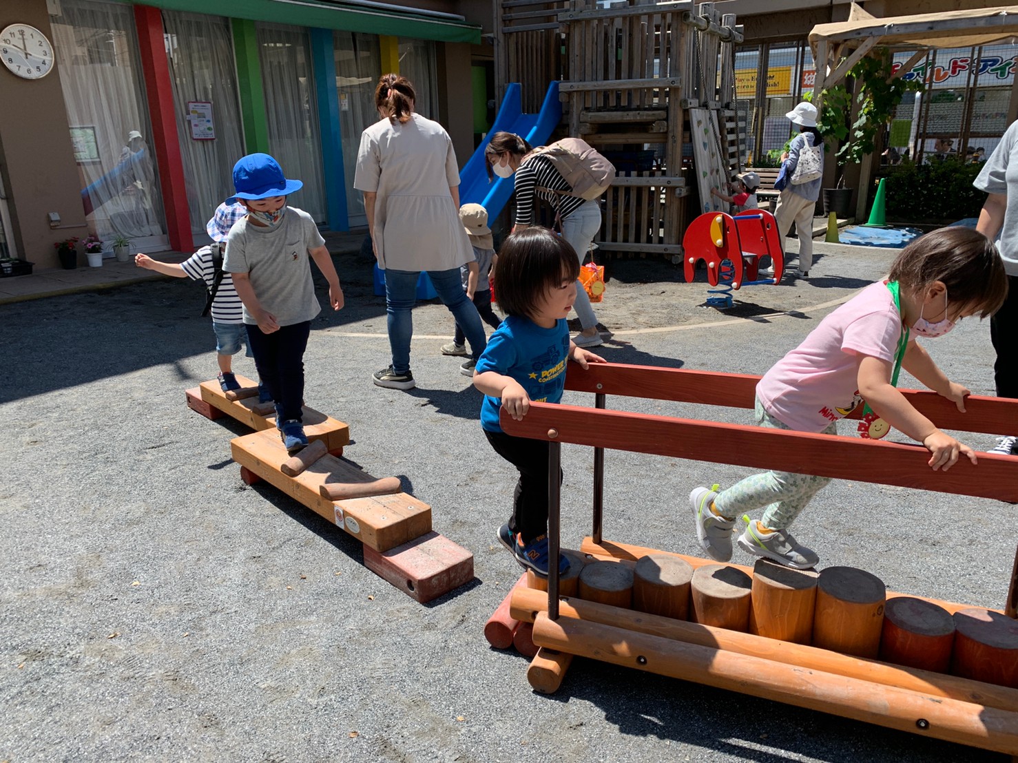 園庭にある遊具で、たくさん遊んでおうちに帰っていきました。高い、すべり台にも何度も挑戦していましたね。