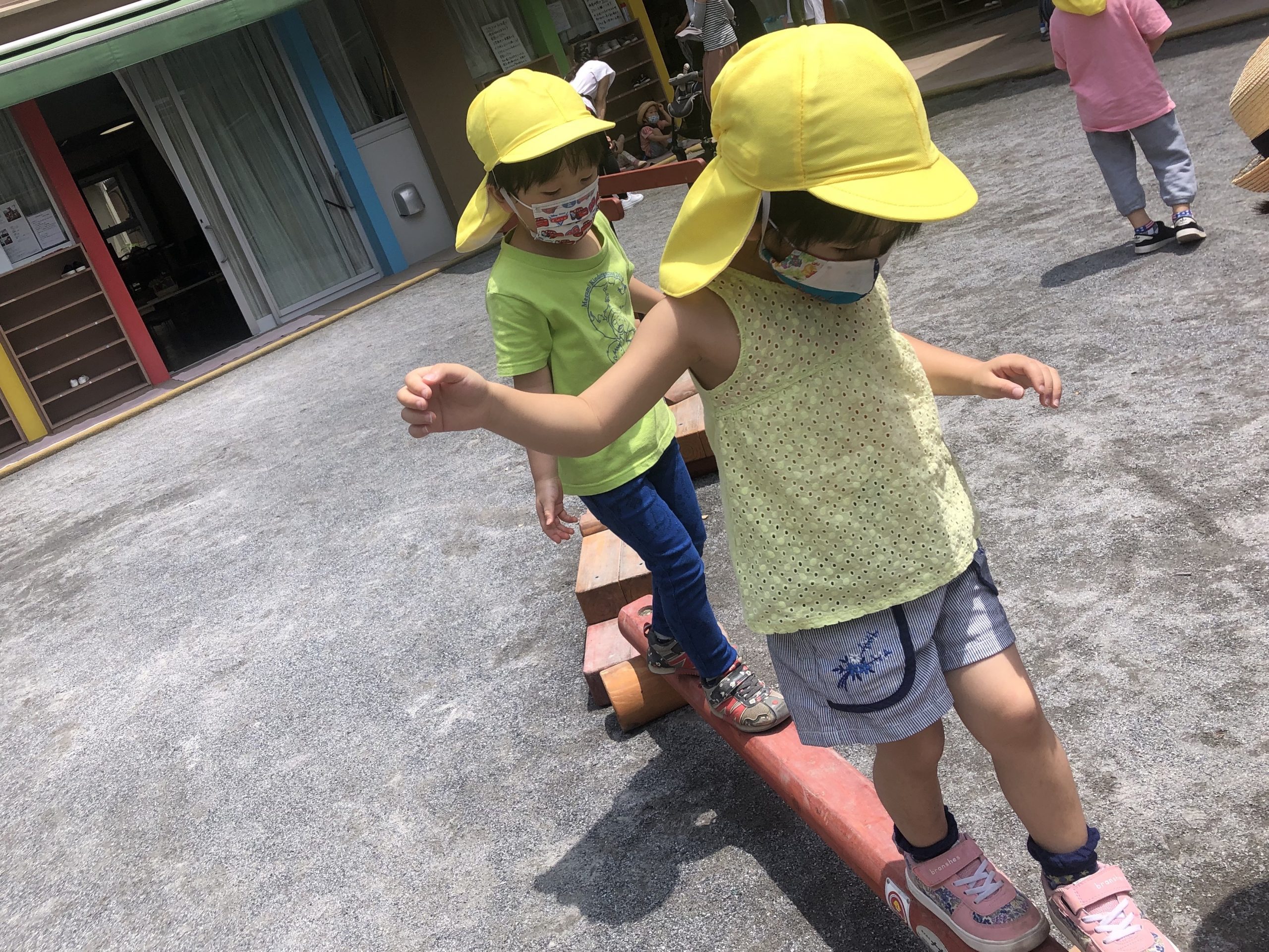 分散登園…3日目 今日のひとこま 2020.06.03 分散登園…3日目今日は、分散登園の三日目でした。良い天気だったので、お外遊びをしました。落ちないようにそうっと… 年中・年長組では、父の日のプレゼントを作り始めました。出来上がりが楽しみです! 明日はBチームの登園日です。元気に登園してきてくださいね!