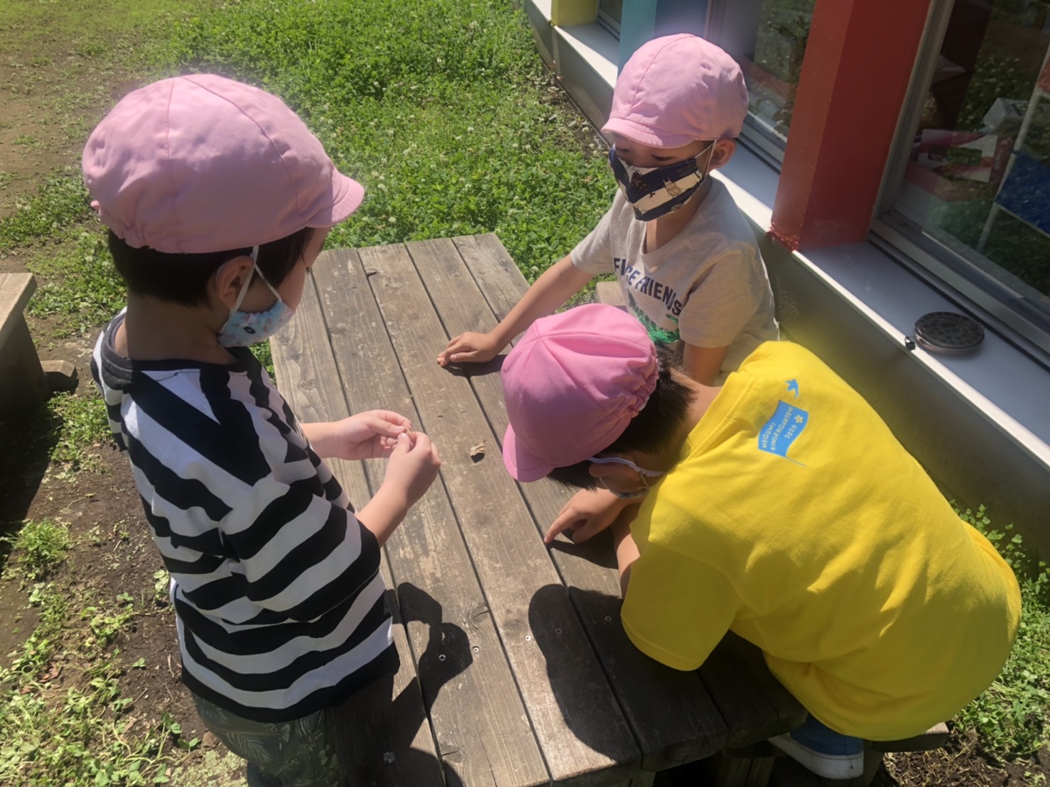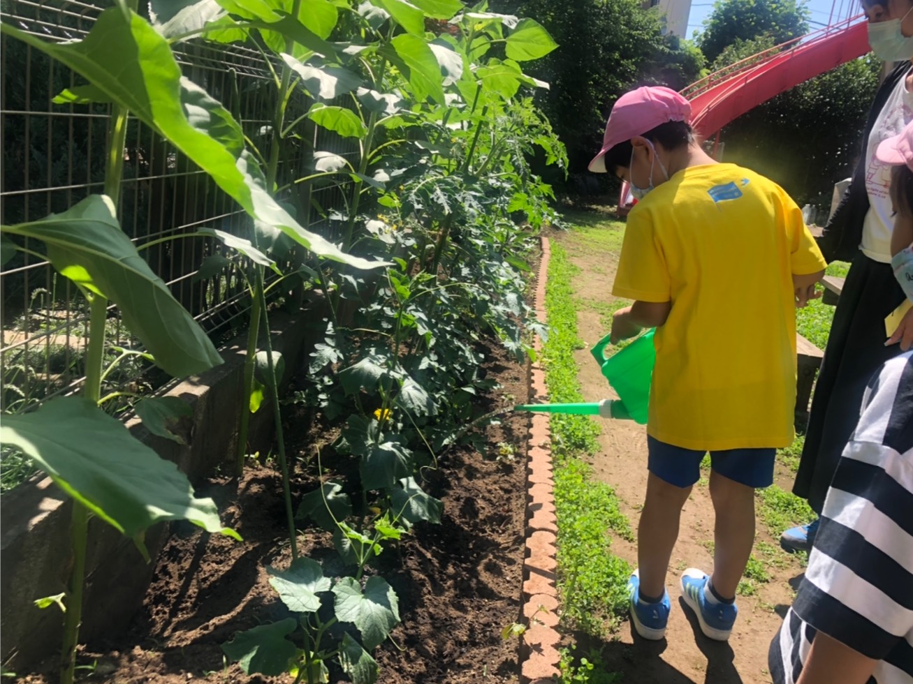 裏庭では、さくら組のお兄さん達が、お花に水をあげてくれました。