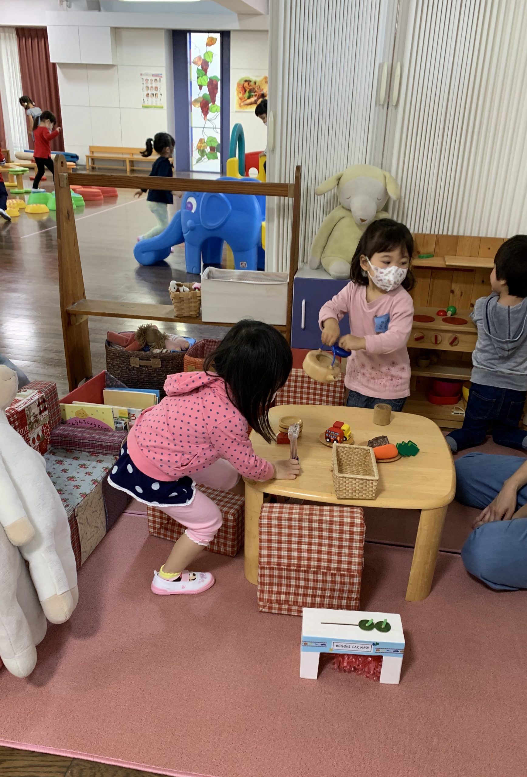 ゆり組さんは『親子登園ひろば』にお邪魔して…自由遊びを楽しみました。