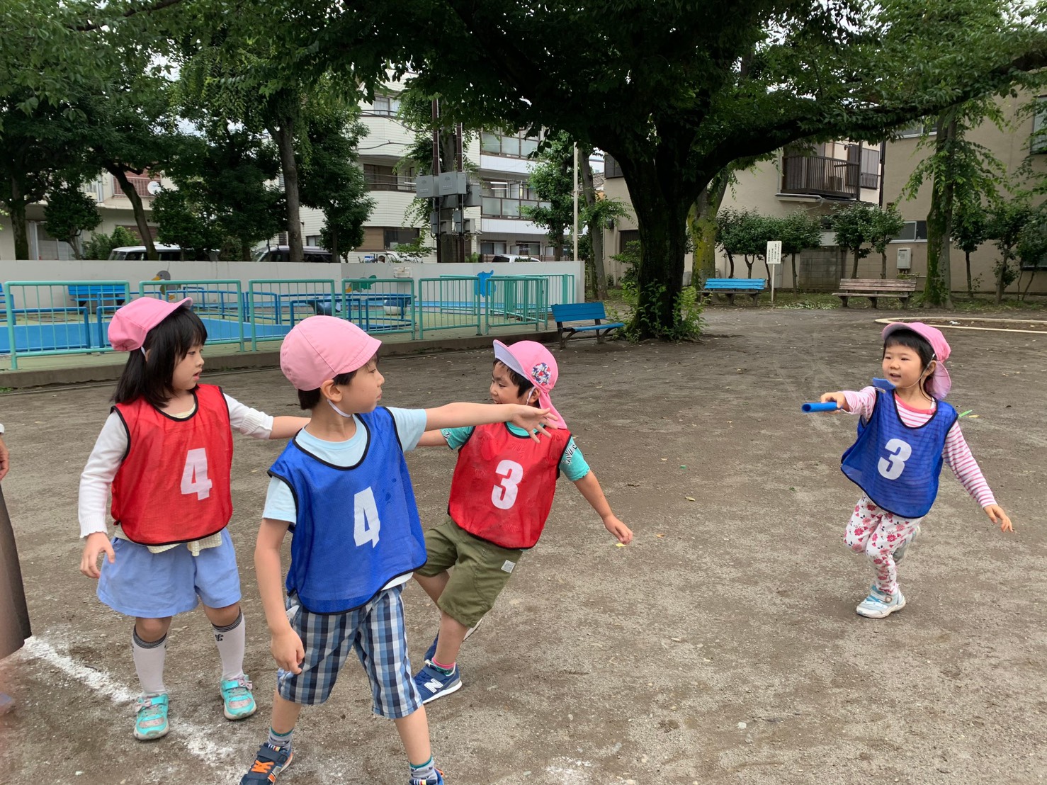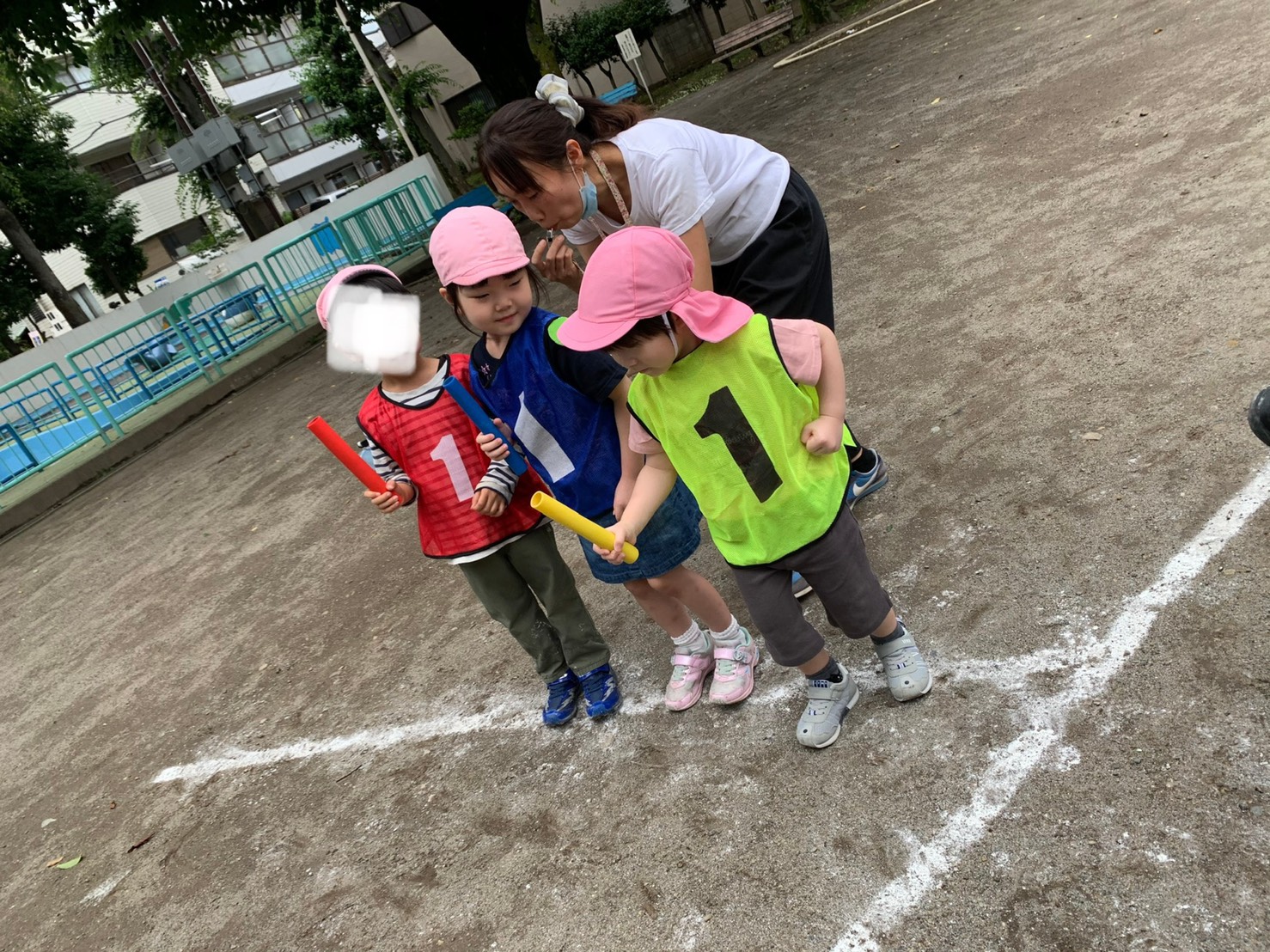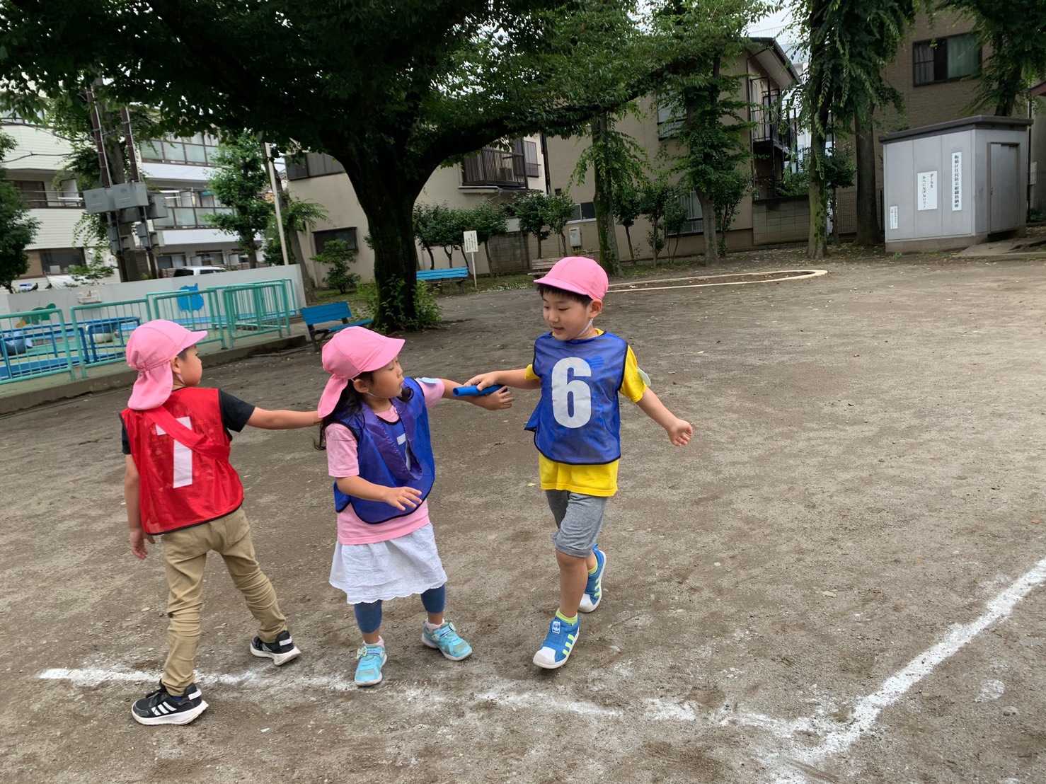 先週、初めてリレーの練習をした年長さくら組。お友だちと協力しながら、バトンをつないで、チームのメンバーを応援して。勝ったり負けたり転んだり、立ち上がってもう一度頑張ったり。いろいろな気持ちを体験しています。まだ2回目ですが、リレーで勝つために必要なことをやってみようとしている姿が見られました。そして、お友だちを精一杯応援している姿が印象的でした。お友だちと力を合わせて勝てた時、みんなの笑顔が輝いていました。またみんなで練習しましょうね。